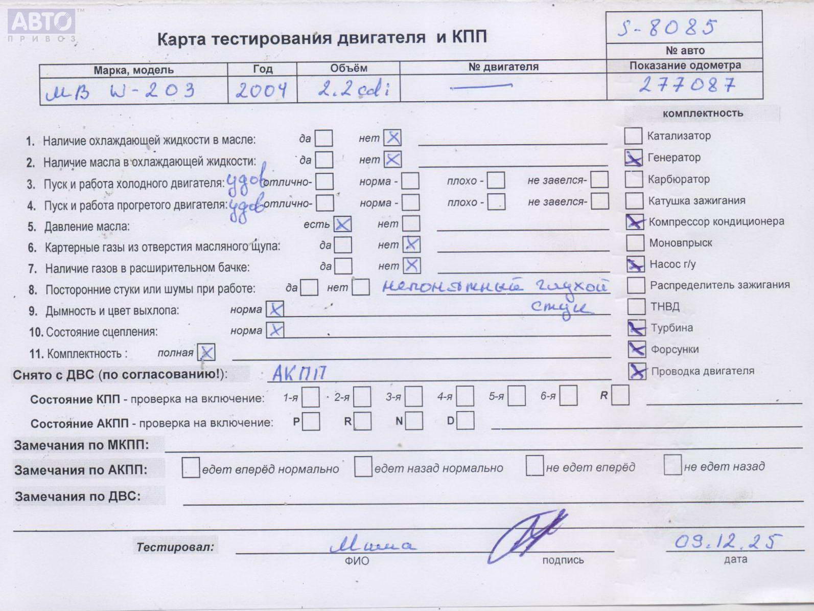 | Марка / Модель / Год: | Mercedes C-Class W203 (2000-2006) 2004 |