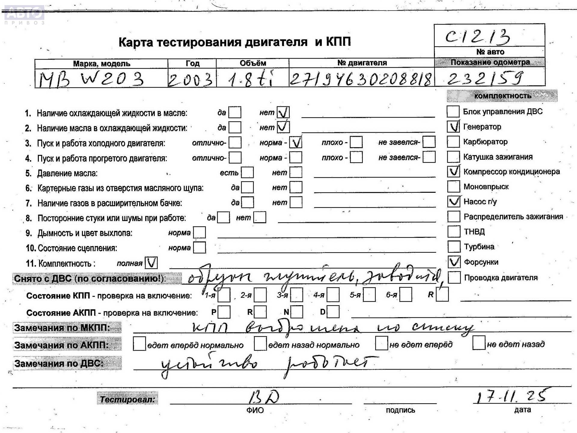 | Автомобиль / VIN: | C1213 WDB2030461A563267 |