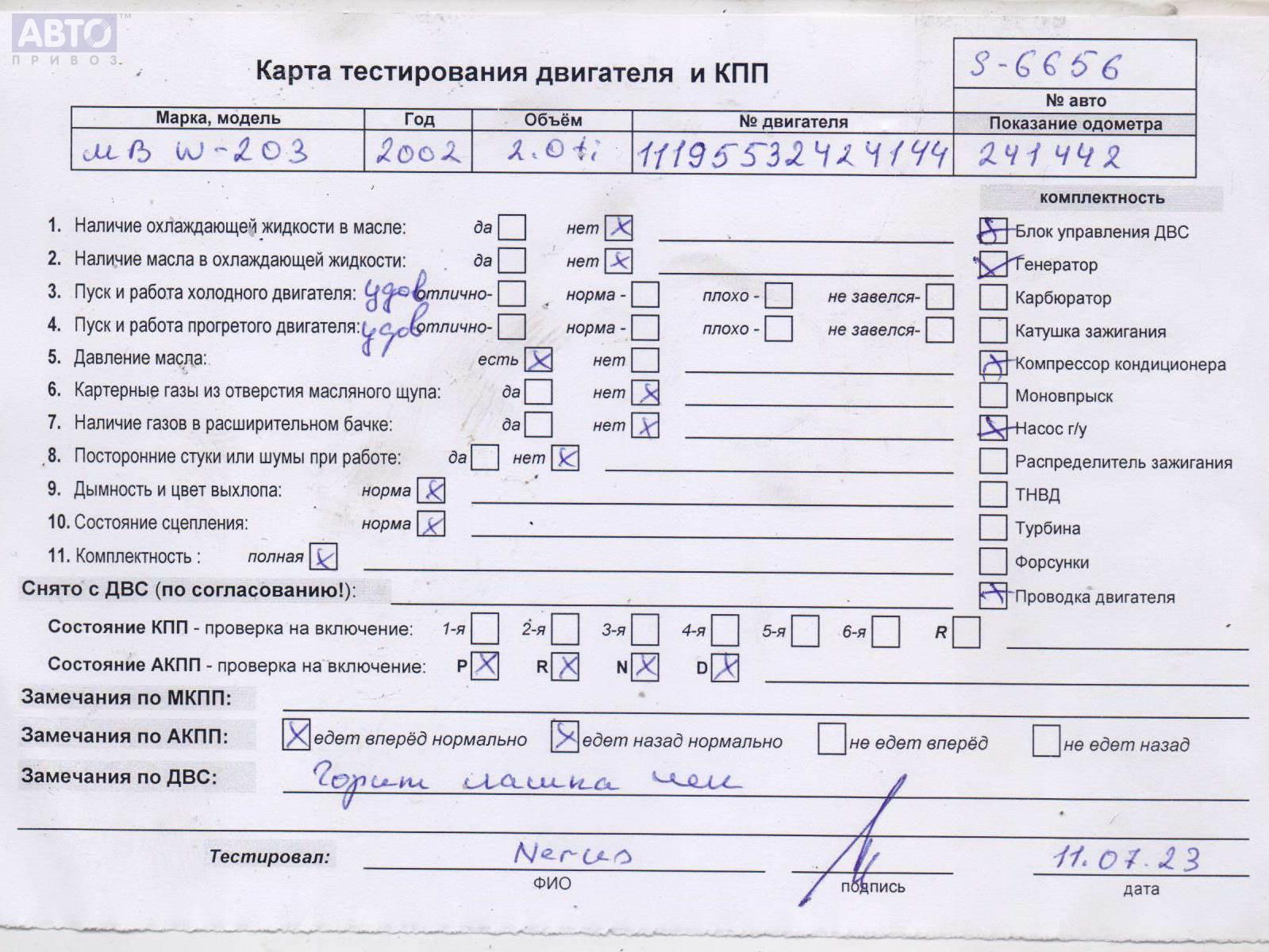 | Марка / Модель / Год: | Mercedes C-Class W203 (2000-2006) 2002 |