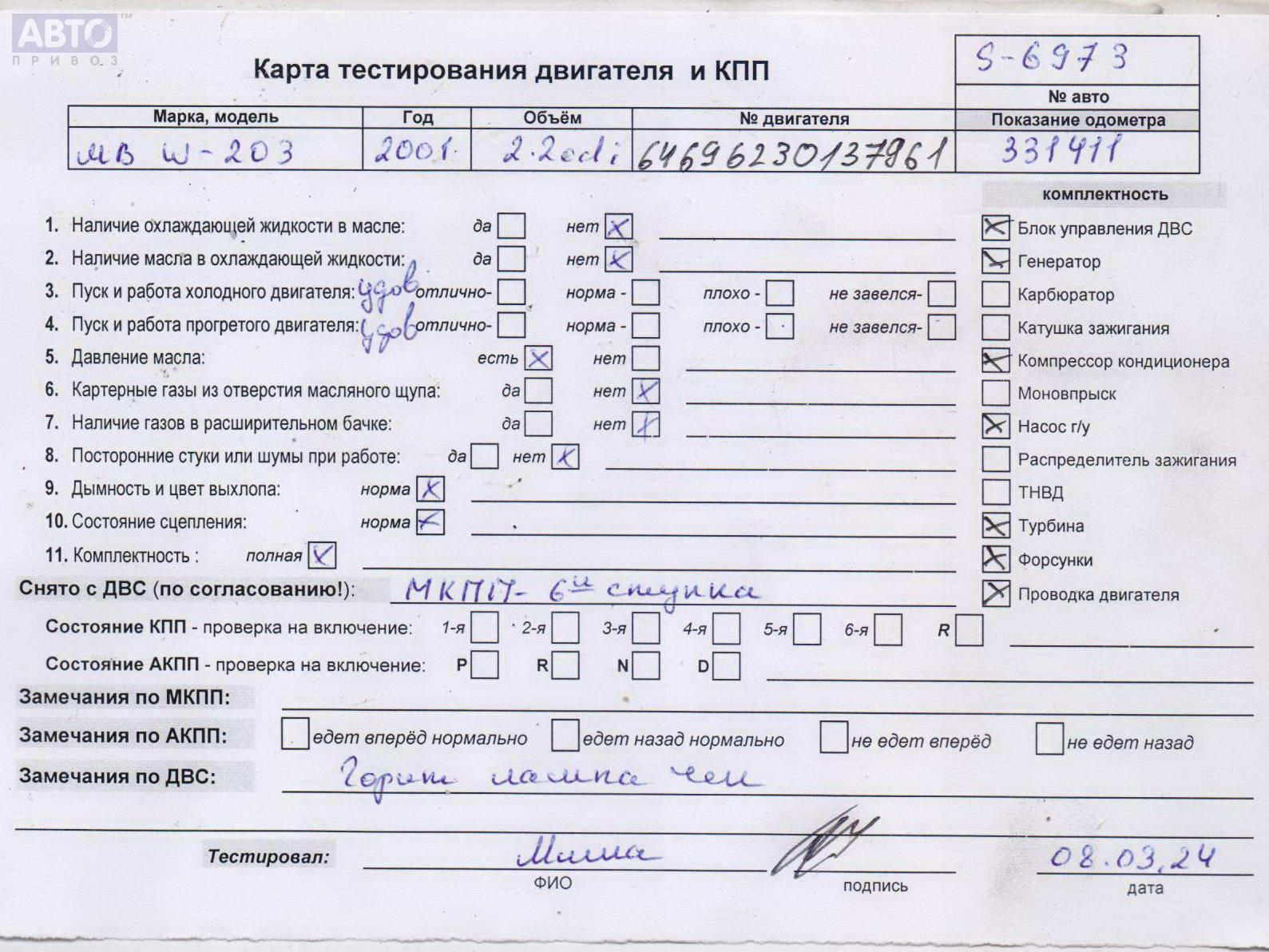 | Автомобиль / VIN: | S6973 WDB2030071F499800 |