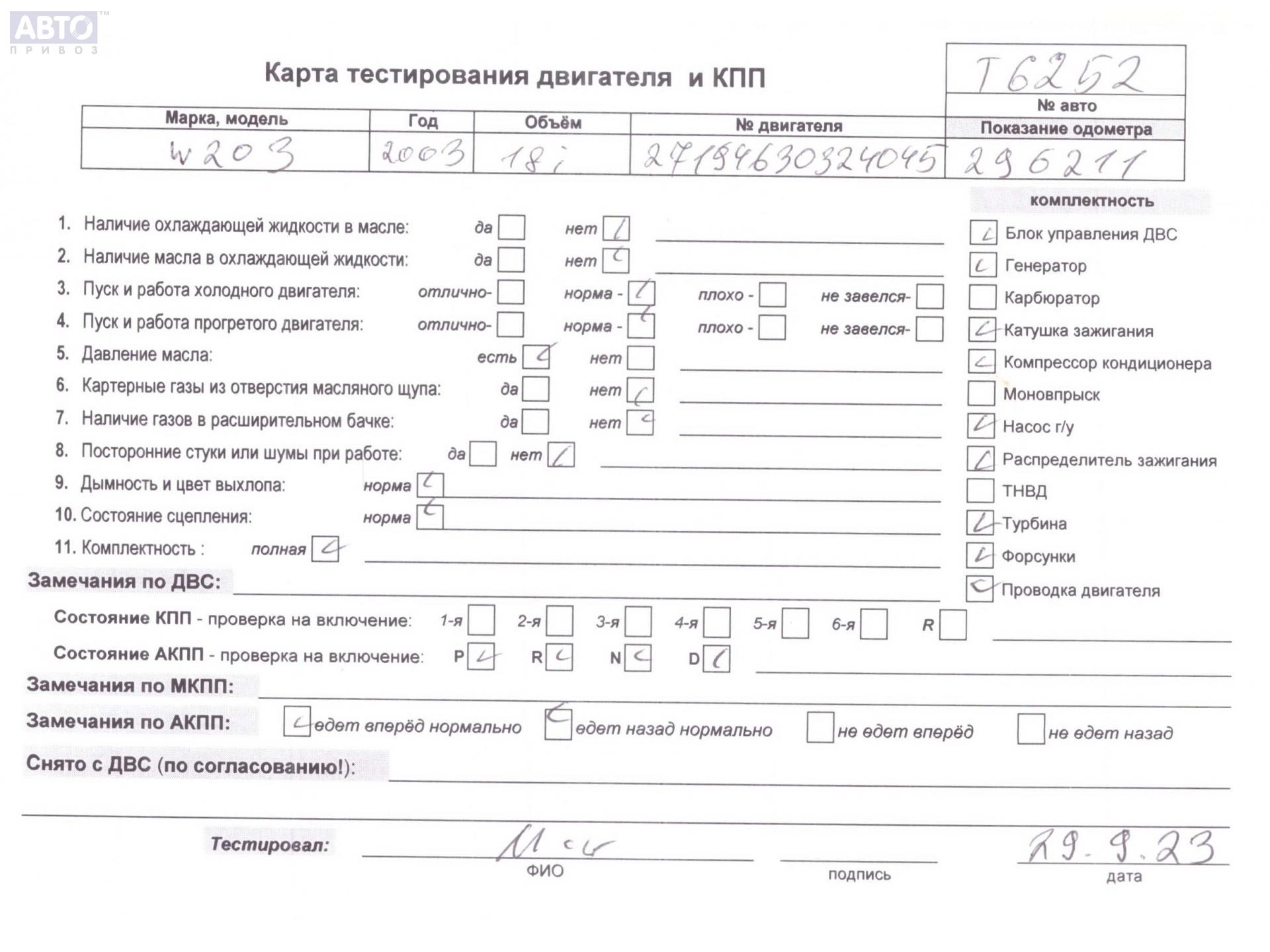 | Марка / Модель / Год: | Mercedes C-Class W203 (2000-2006) 2004 |
