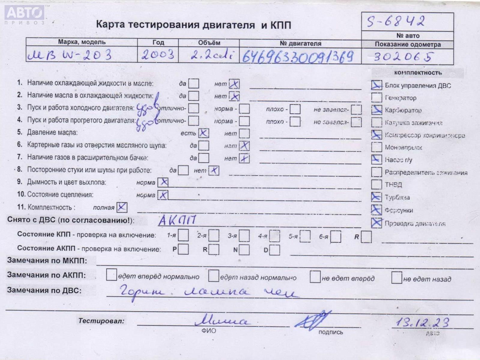 | Марка / Модель / Год: | Mercedes C-Class W203 (2000-2006) 2003 |
