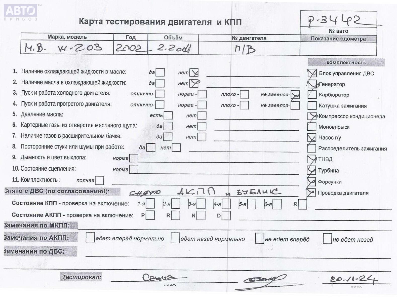 | Автомобиль / VIN: | P3442 WDB2032041F361169 |