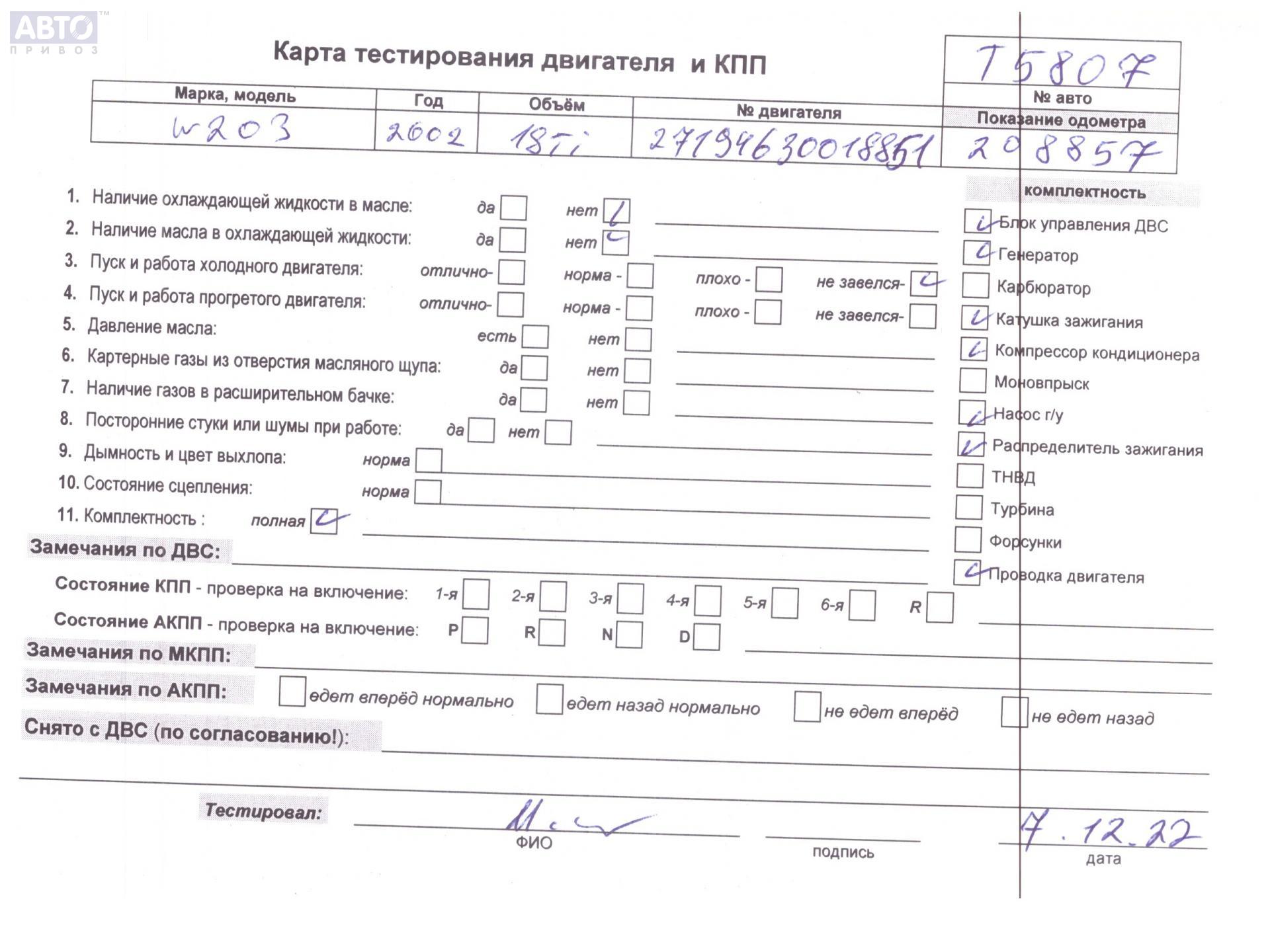 | Автомобиль / VIN: | T5807 WDB2032461F313007 |