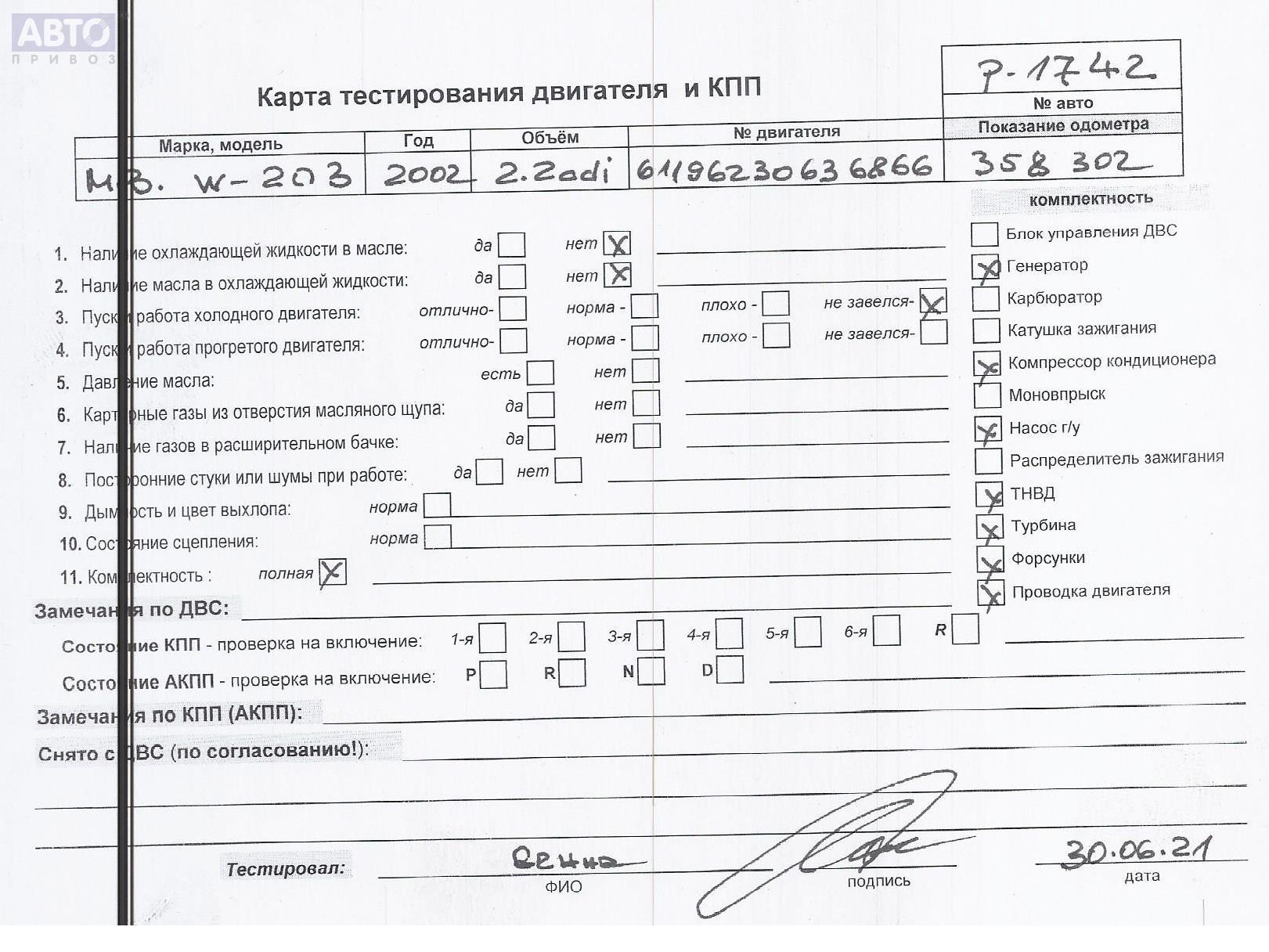 | Автомобиль / VIN: | P1742 WDB2032061F382105 |