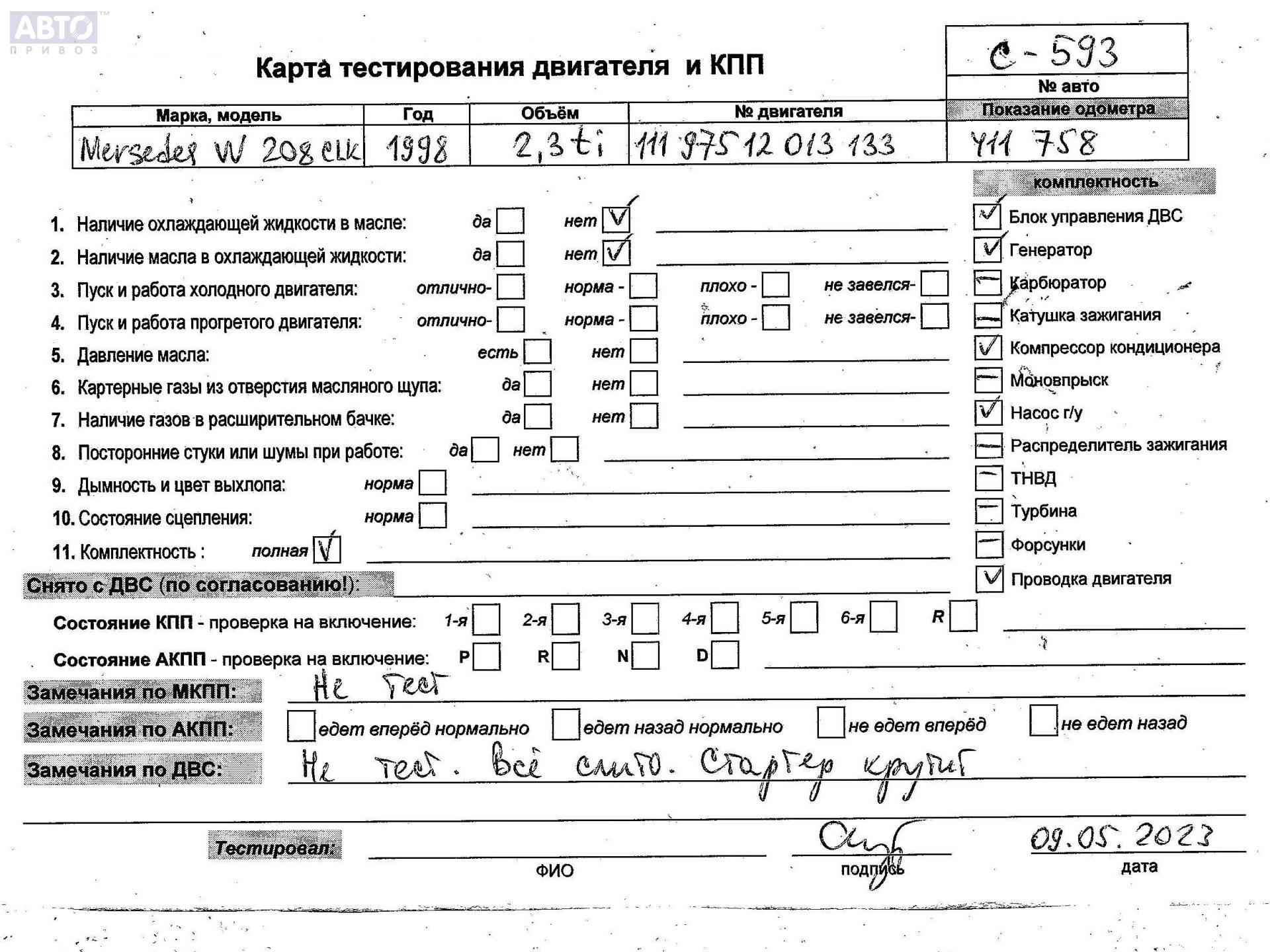 | Автомобиль / VIN: | C0593 WDB2084471T001332 |