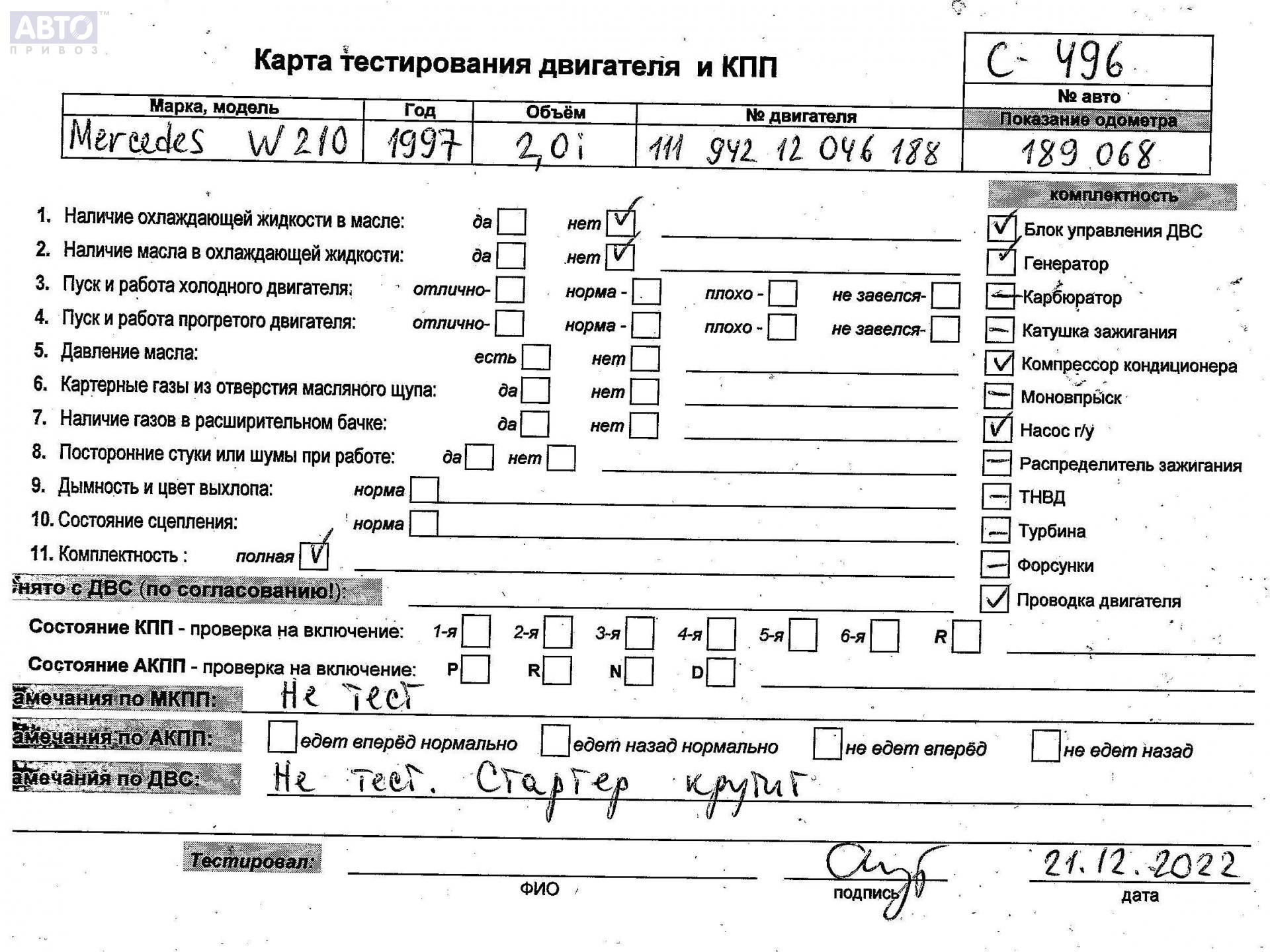 | Автомобиль / VIN: | C0496 WDB2102351A541635 |