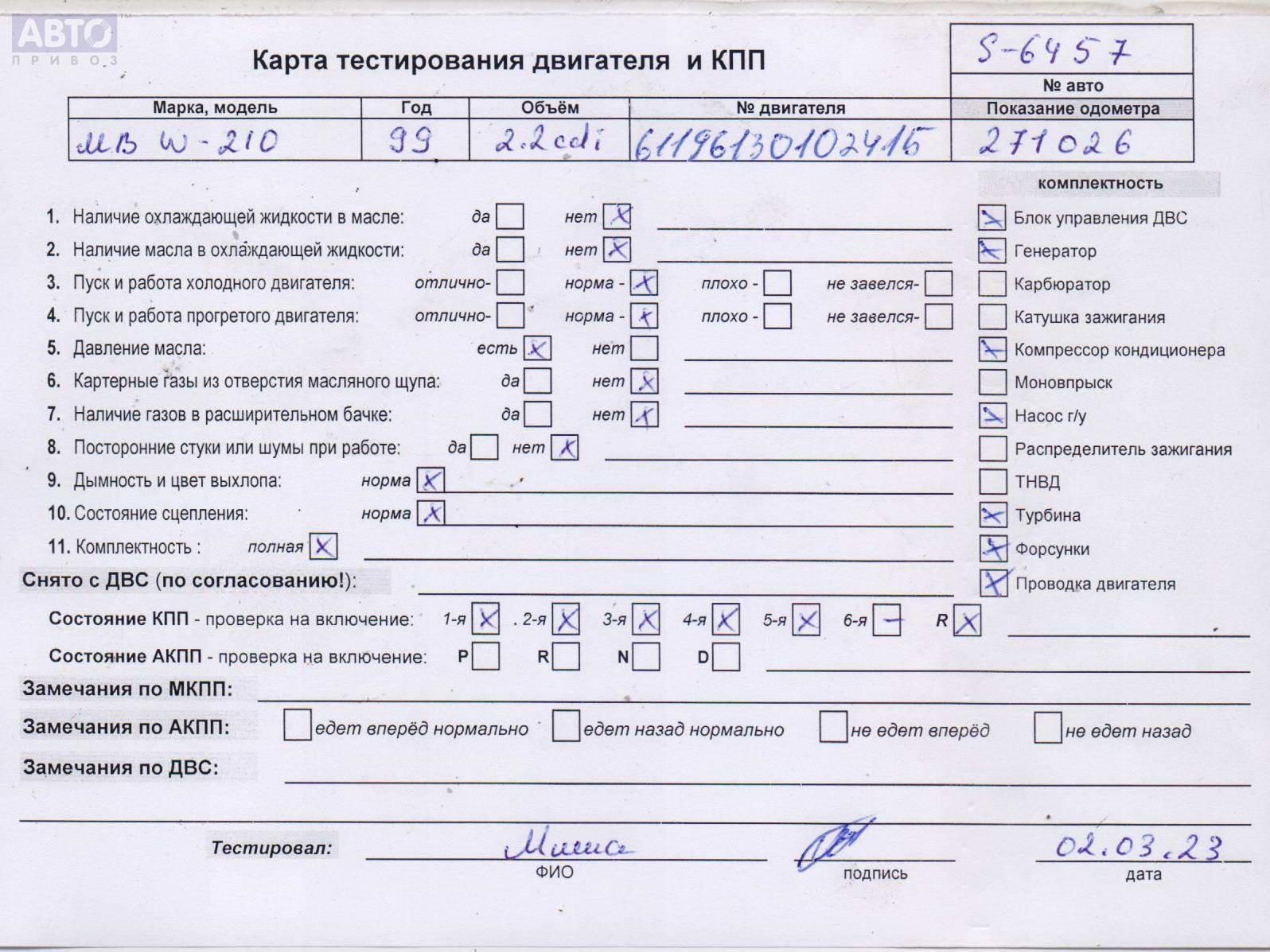 | Автомобиль / VIN: | S6457 WDB2100071A902769 |