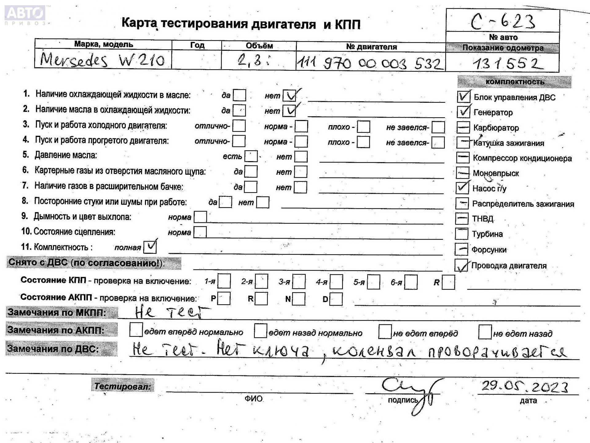 | Автомобиль / VIN: | C0623 WDB2100371A042000 |