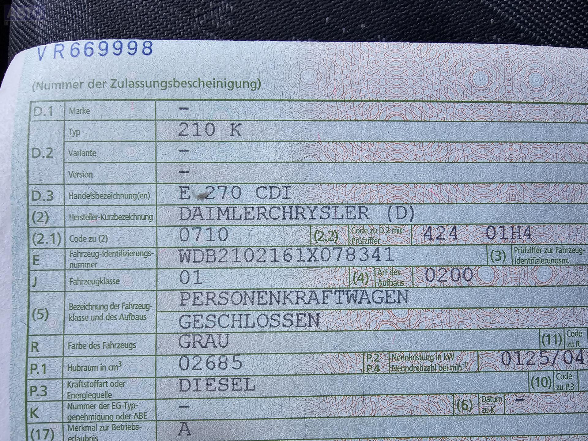 | Автомобиль / VIN: | T6455 WDB2102161X078341 |