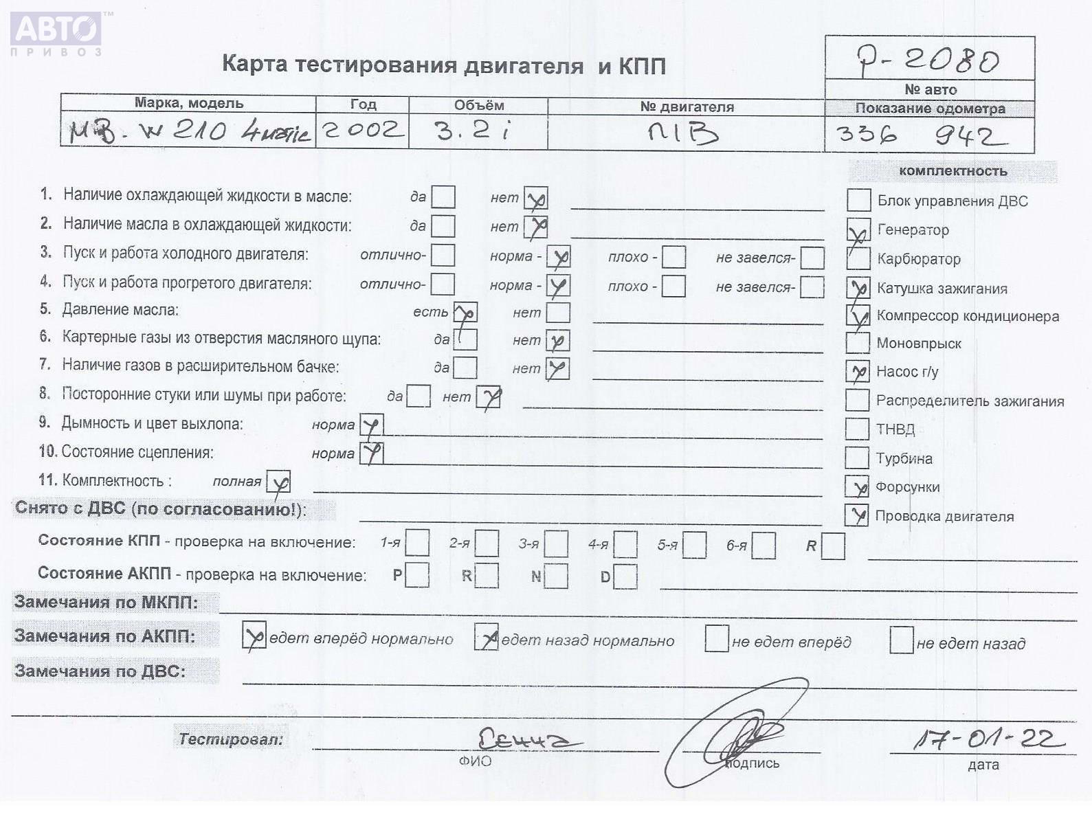 | Марка / Модель / Год: | Mercedes E-Class W210 (1995-2002) 2002 |