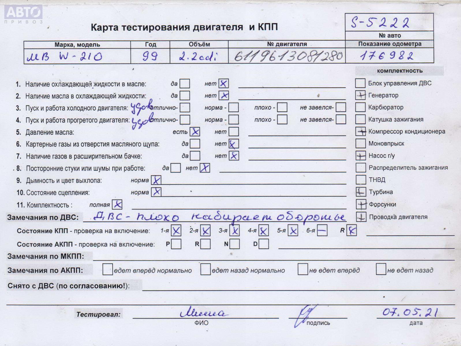 | Автомобиль / VIN: | S5222 WDB2100071A861194 |