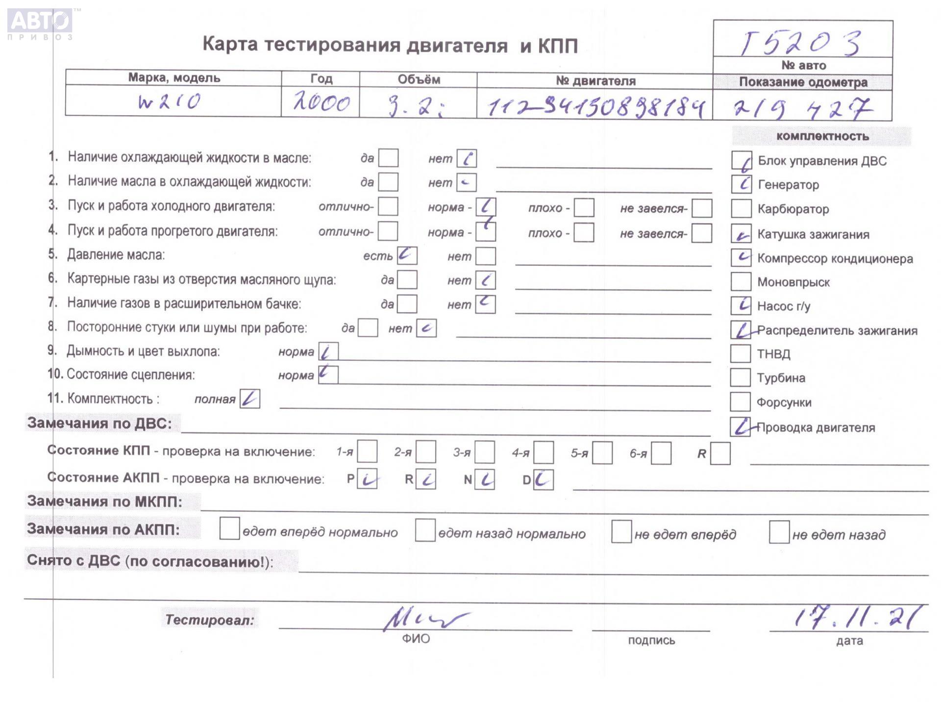 | Марка / Модель / Год: | Mercedes E-Class W210 (1995-2002) 2000 |