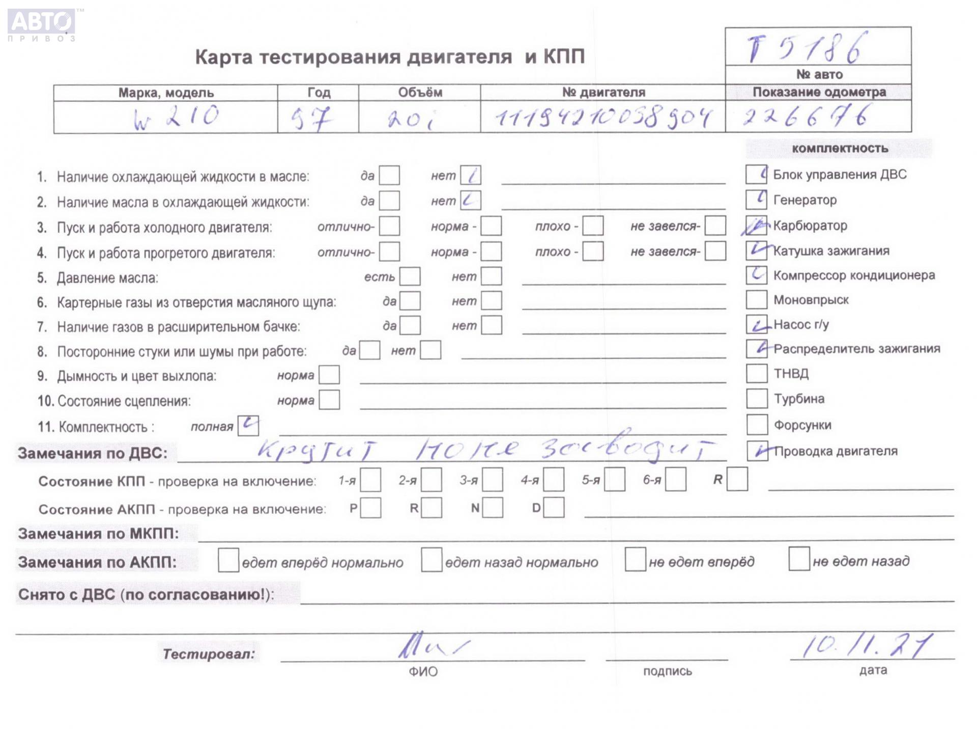 | Автомобиль / VIN: | T5186 WDB2102351A392658 |