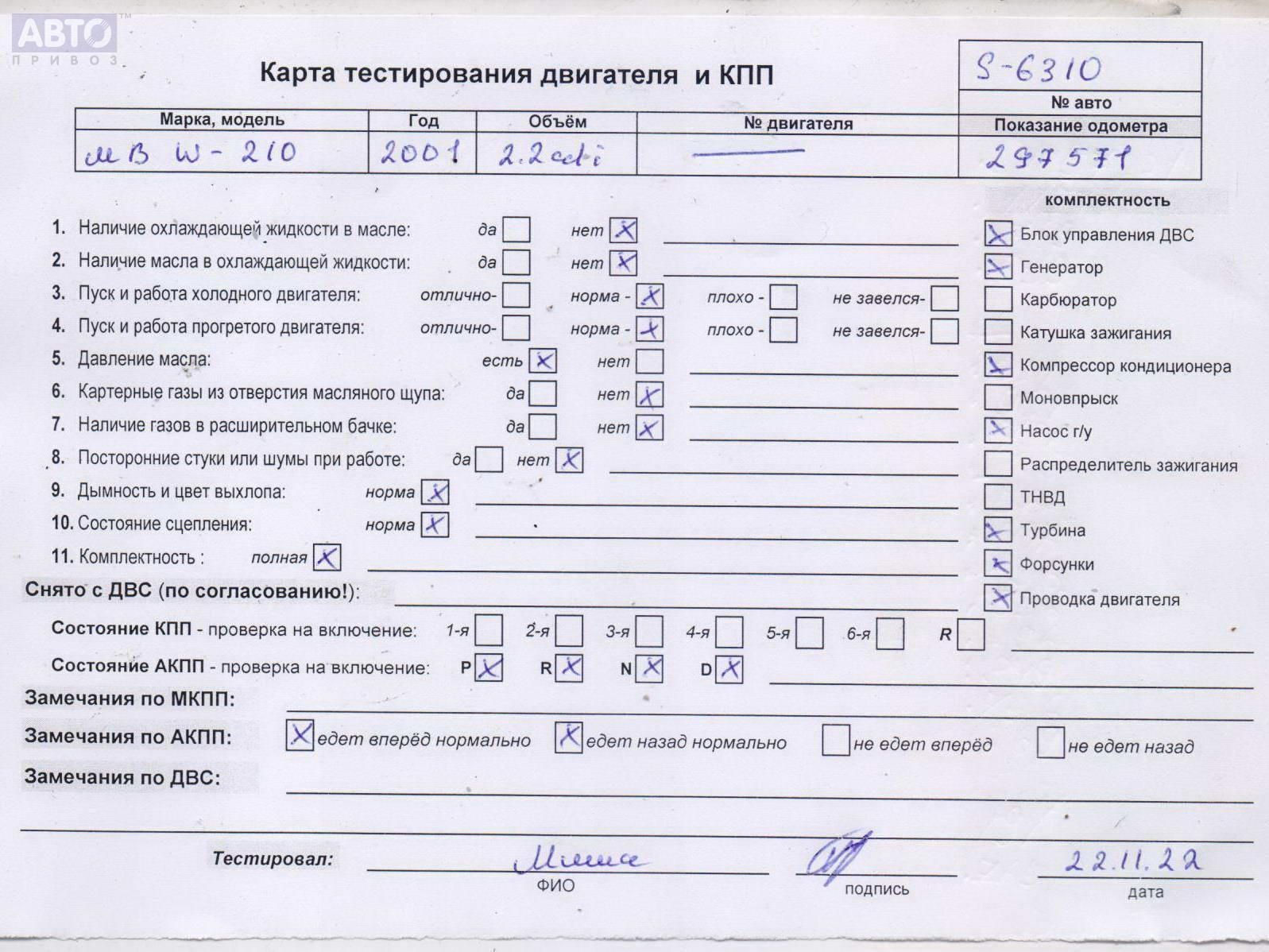 | Марка / Модель / Год: | Mercedes E-Class W210 (1995-2002) 2001 |