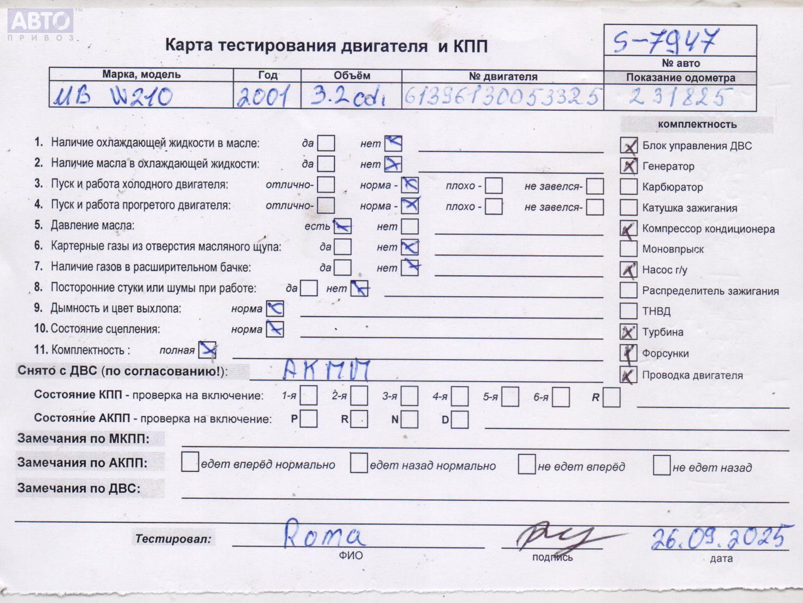 | Автомобиль / VIN: | S7947 WDB2102261B366881 |