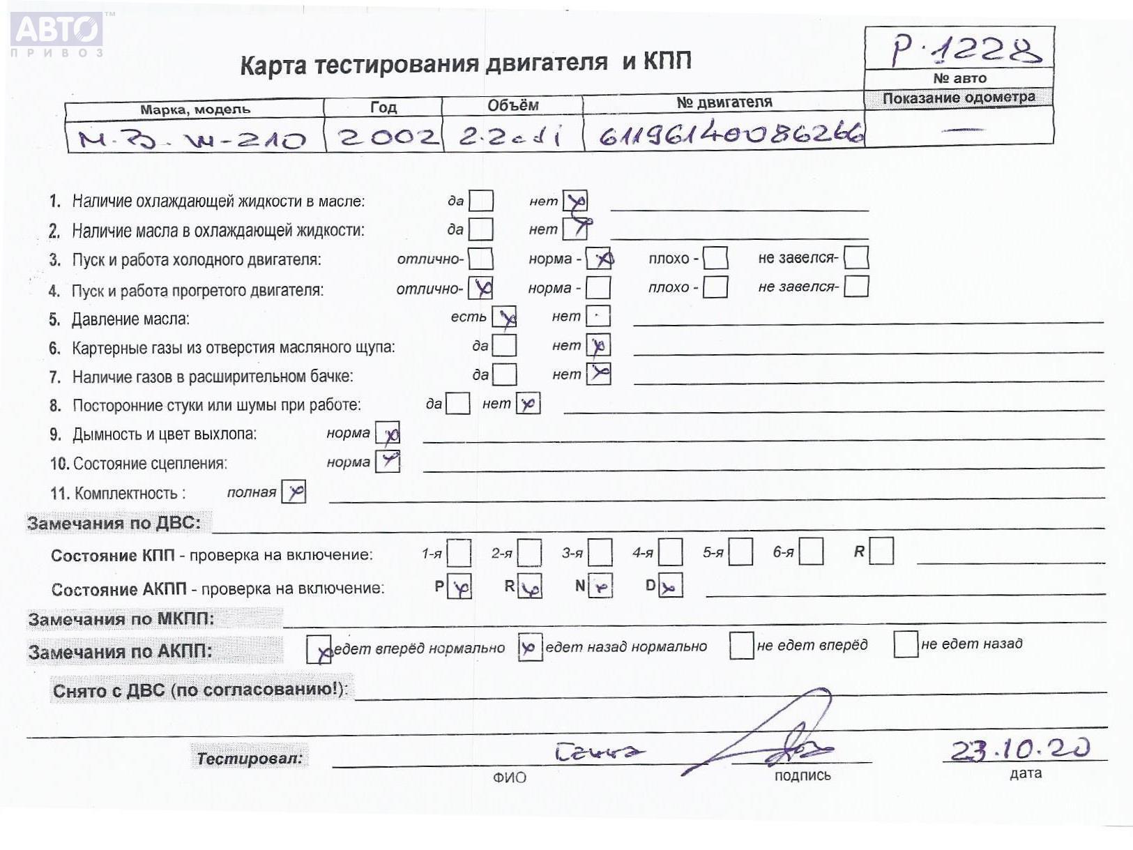 | Автомобиль / VIN: | P1228 WDB2102061X093610 |