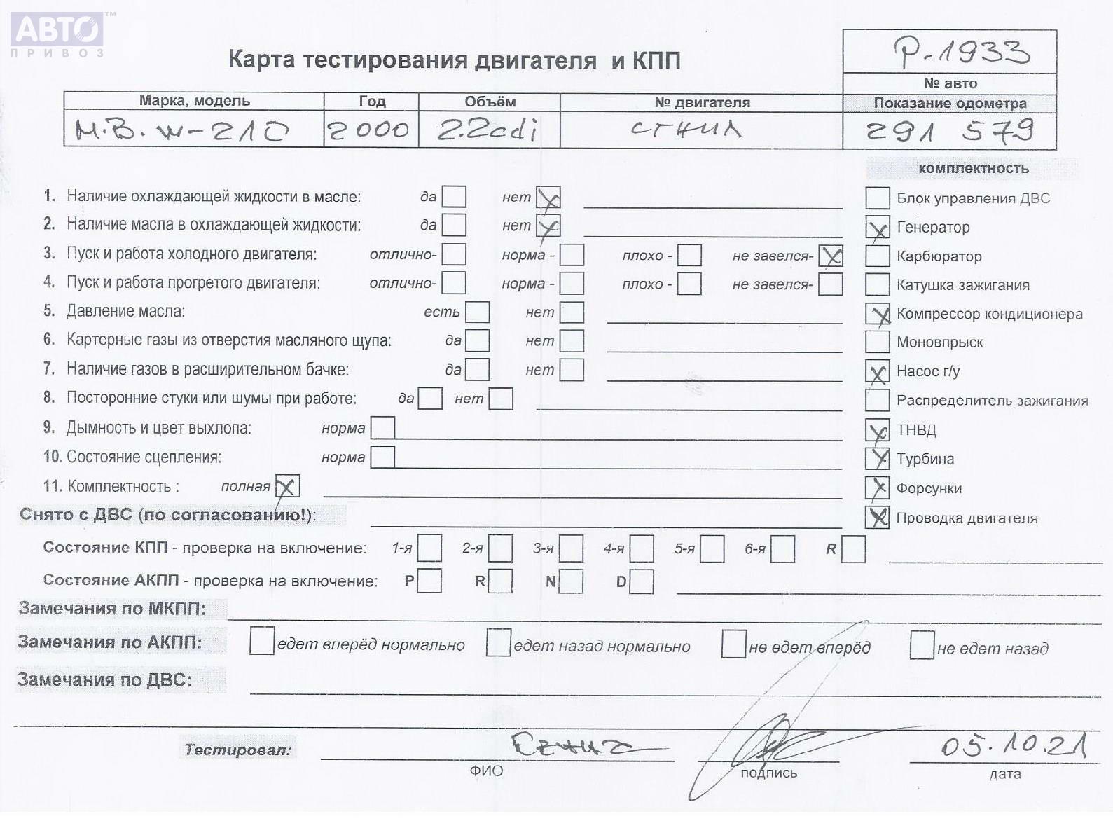 | Автомобиль / VIN: | P1933 WDB2100061B151798 |