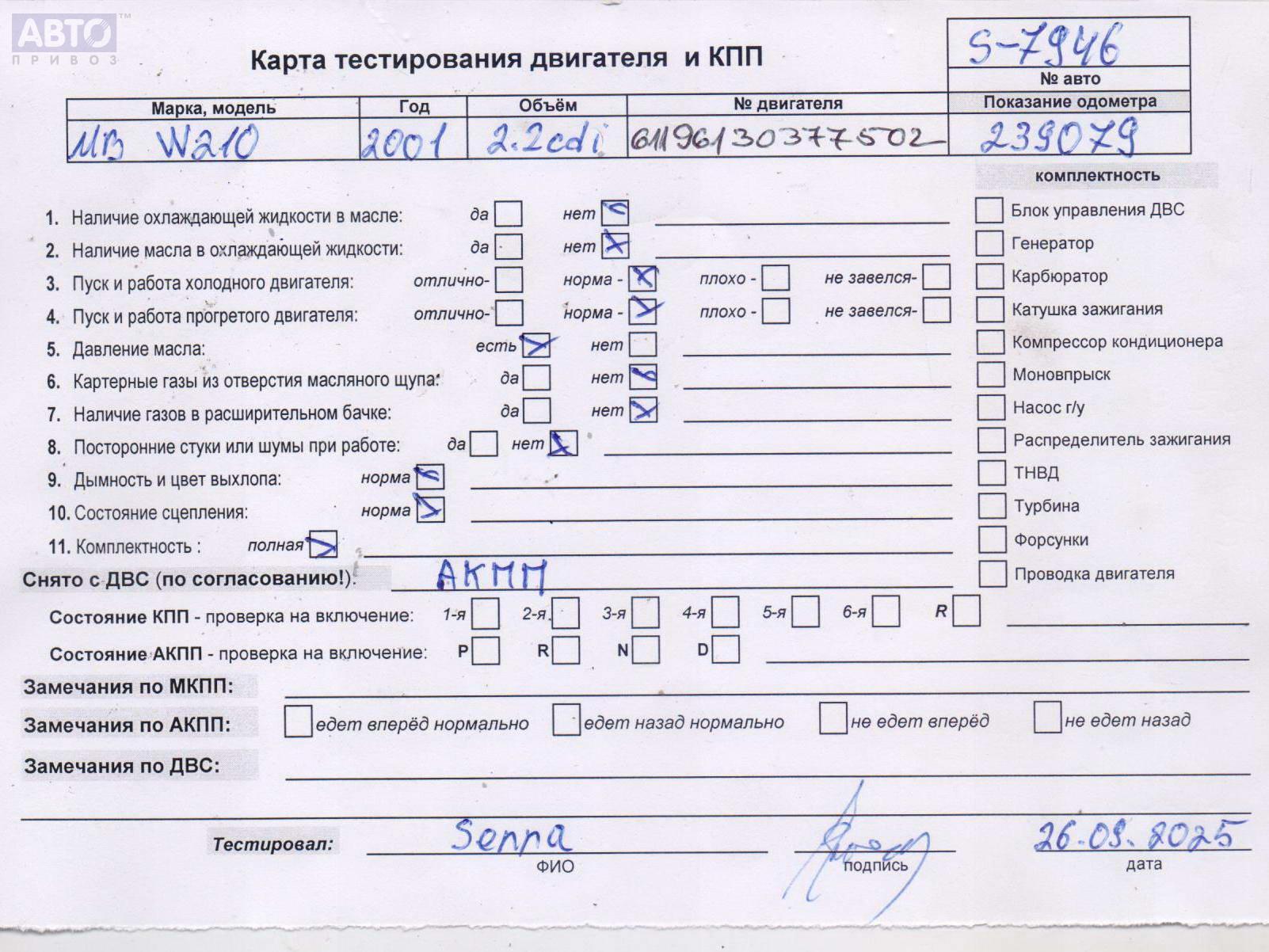 | Марка / Модель / Год: | Mercedes E-Class W210 (1995-2002) 2001 |