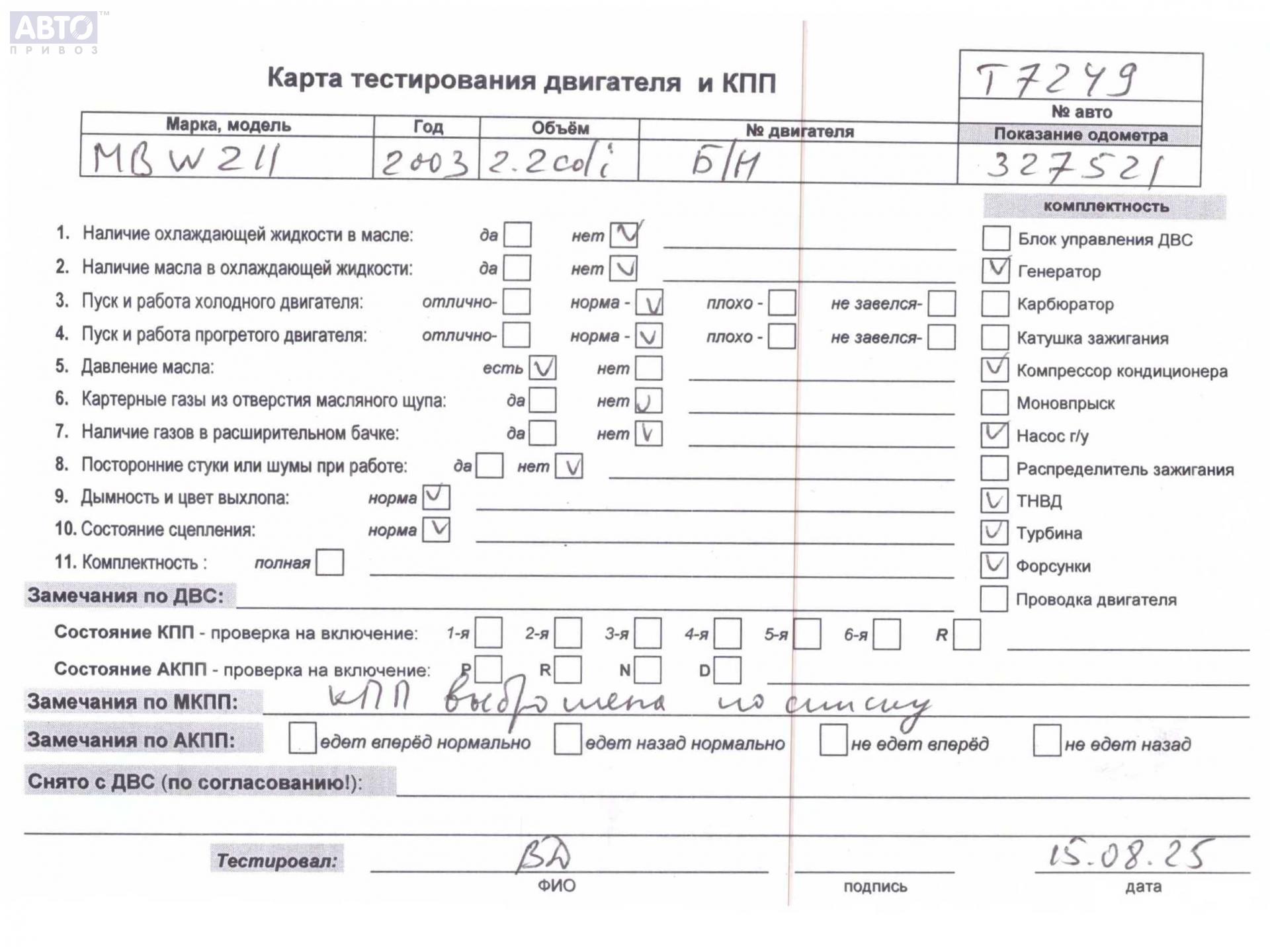 | Марка / Модель / Год: | Mercedes E-Class W211 (2002-2009) 2003 |