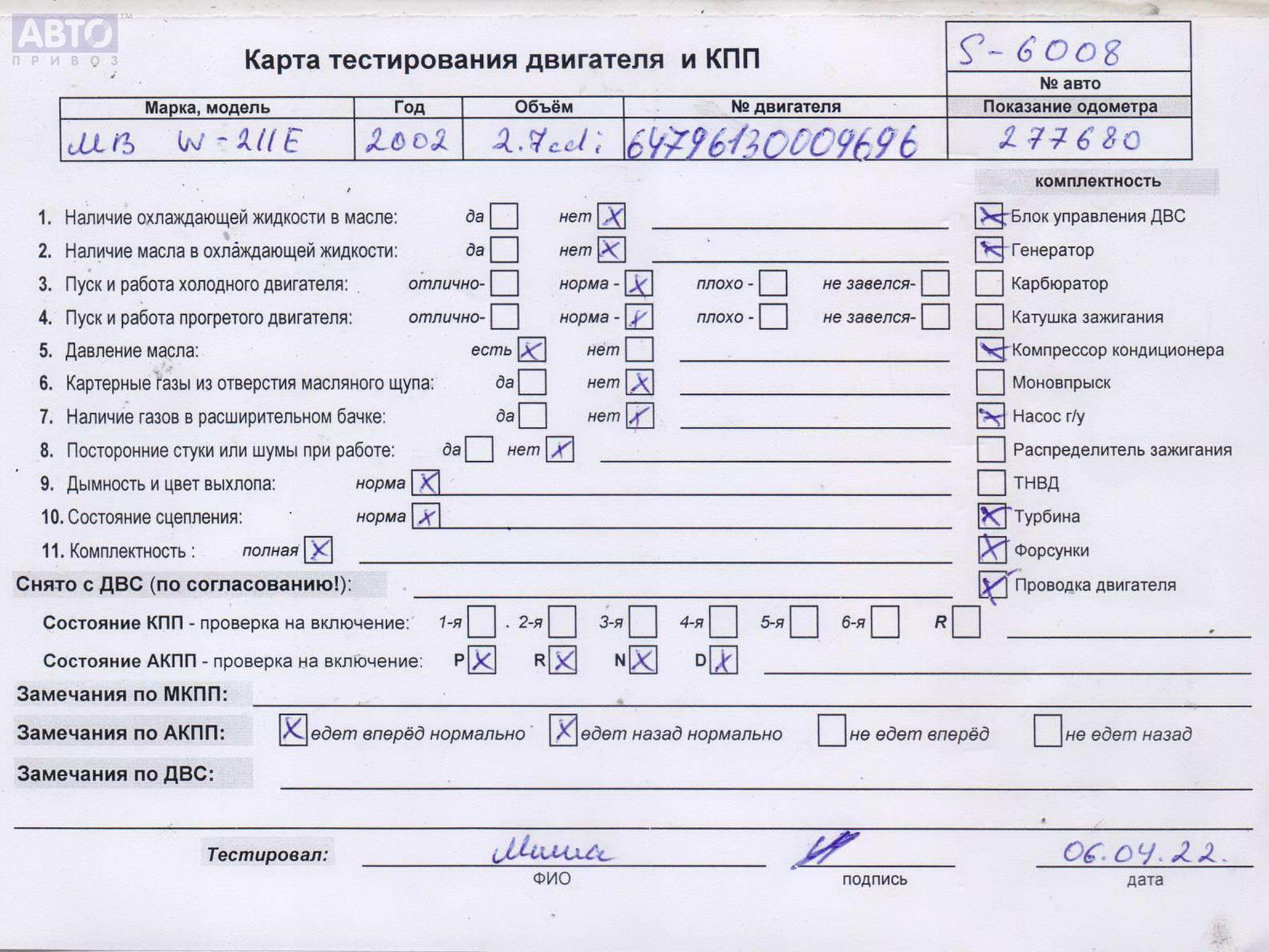 | Автомобиль / VIN: | S6008 WDB2110161A035124 |