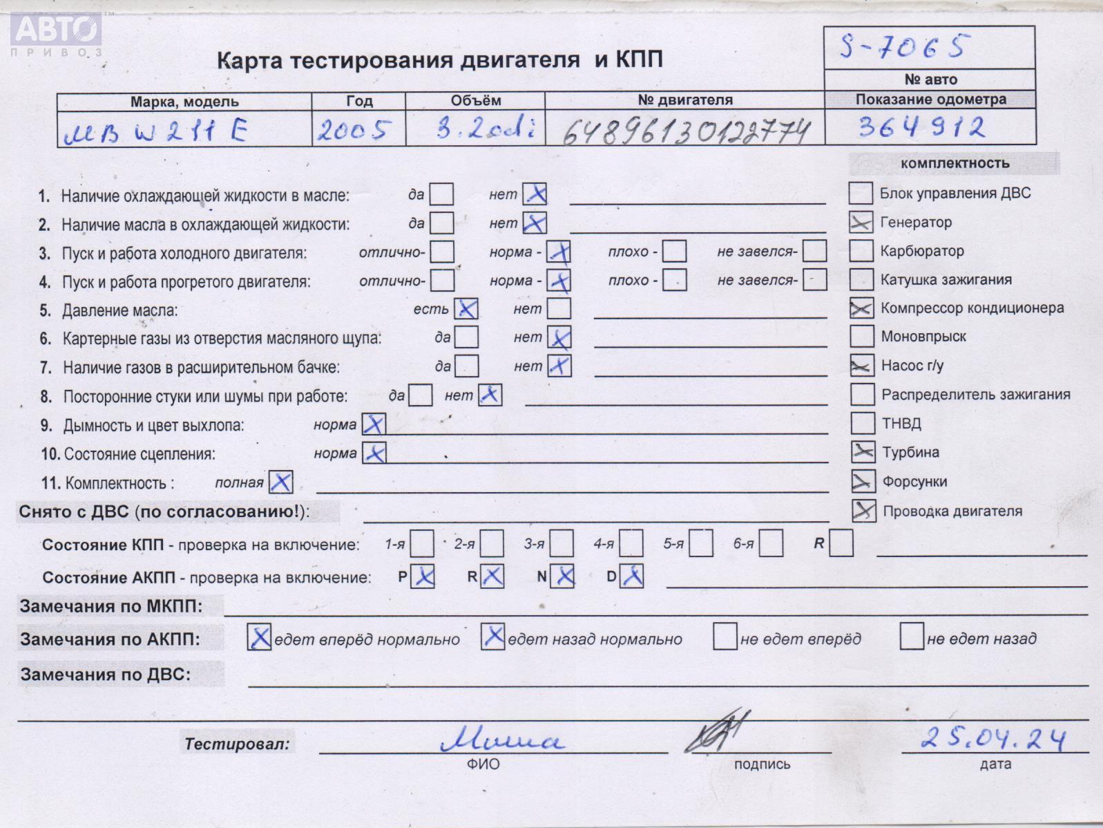 | Марка / Модель / Год: | Mercedes E-Class W211 (2002-2009) 2005 |
