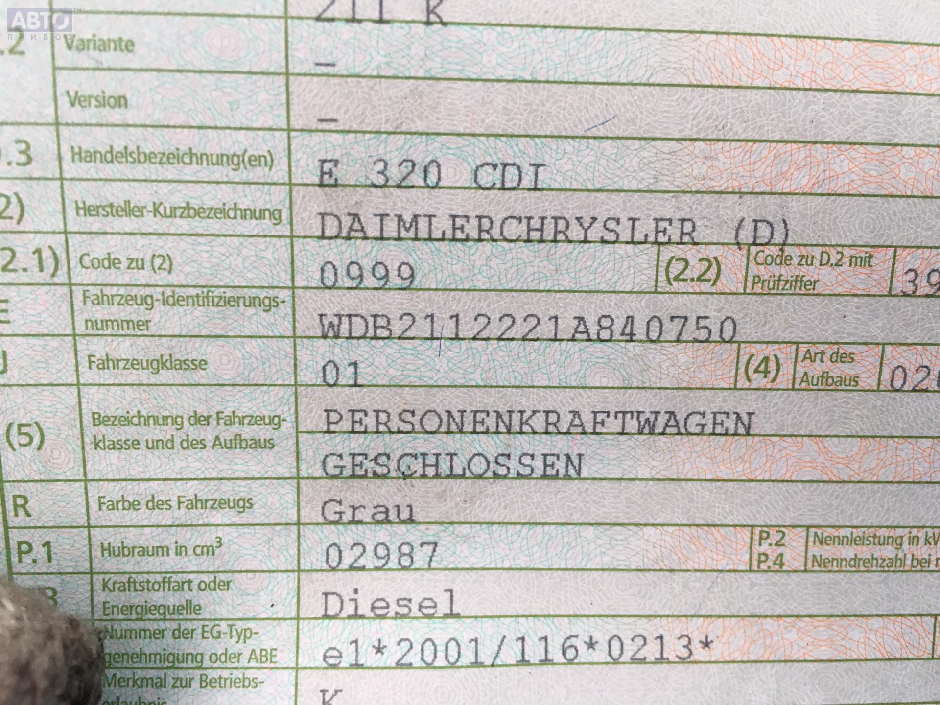 | Марка / Модель / Год: | Mercedes E-Class W211 (2002-2009) 2005 |
