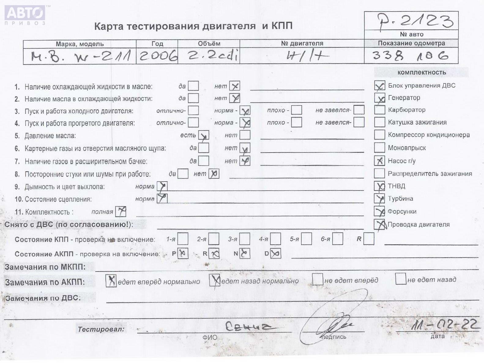 | Марка / Модель / Год: | Mercedes E-Class W211 (2002-2009) 2006 |
