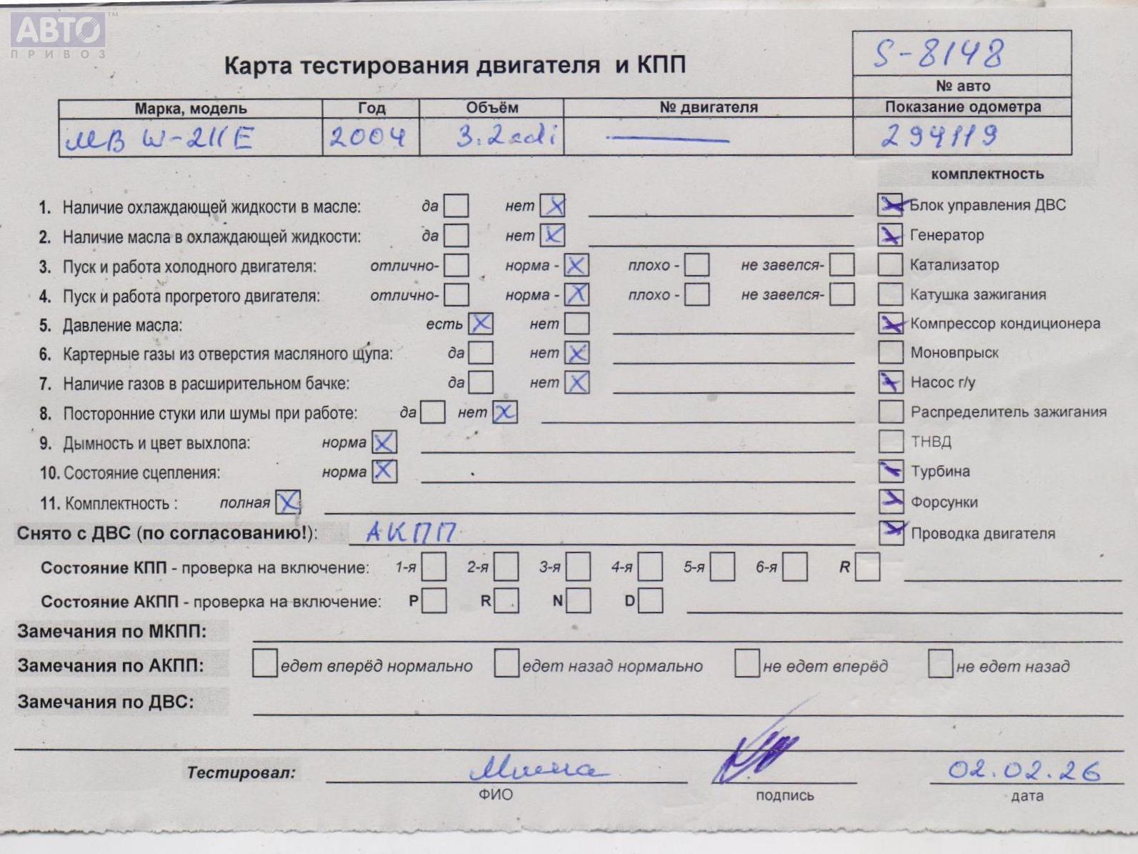 | Марка / Модель / Год: | Mercedes E-Class W211 (2002-2009) 2004 |