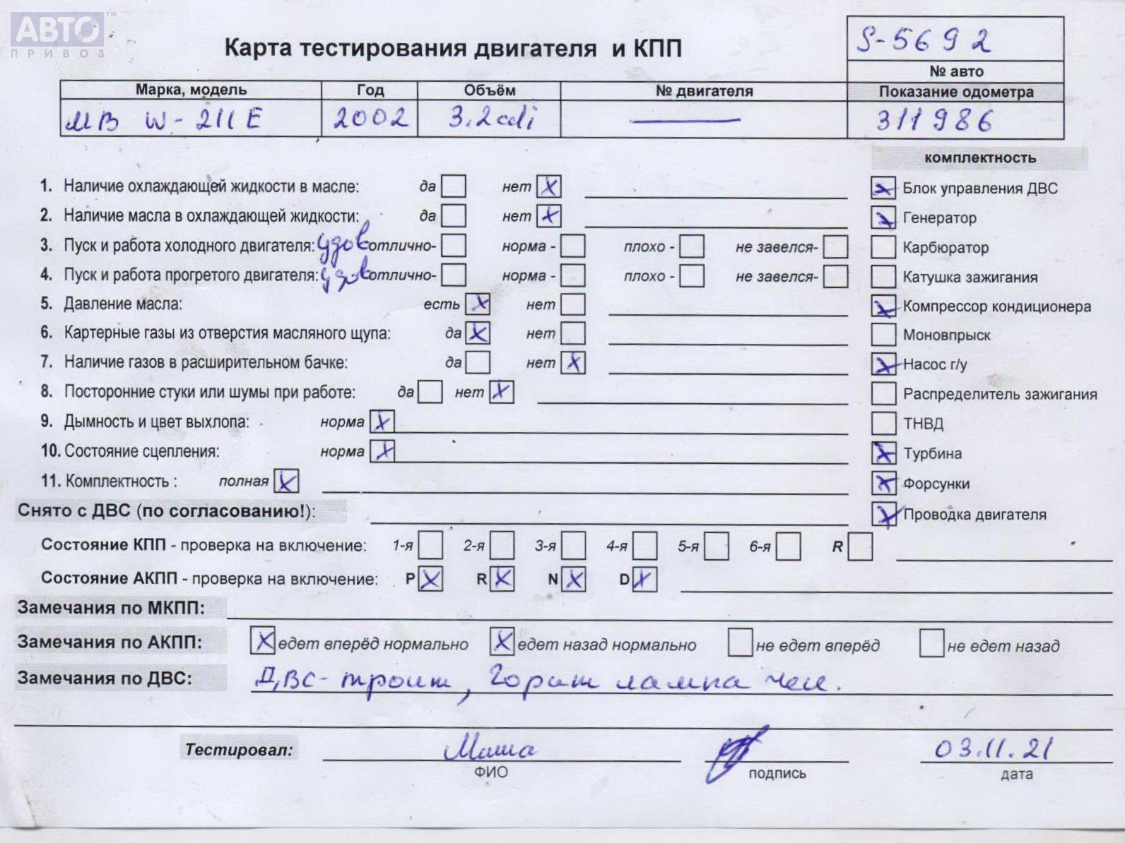 | Автомобиль / VIN: | S5692 WDB2112261A188613 |