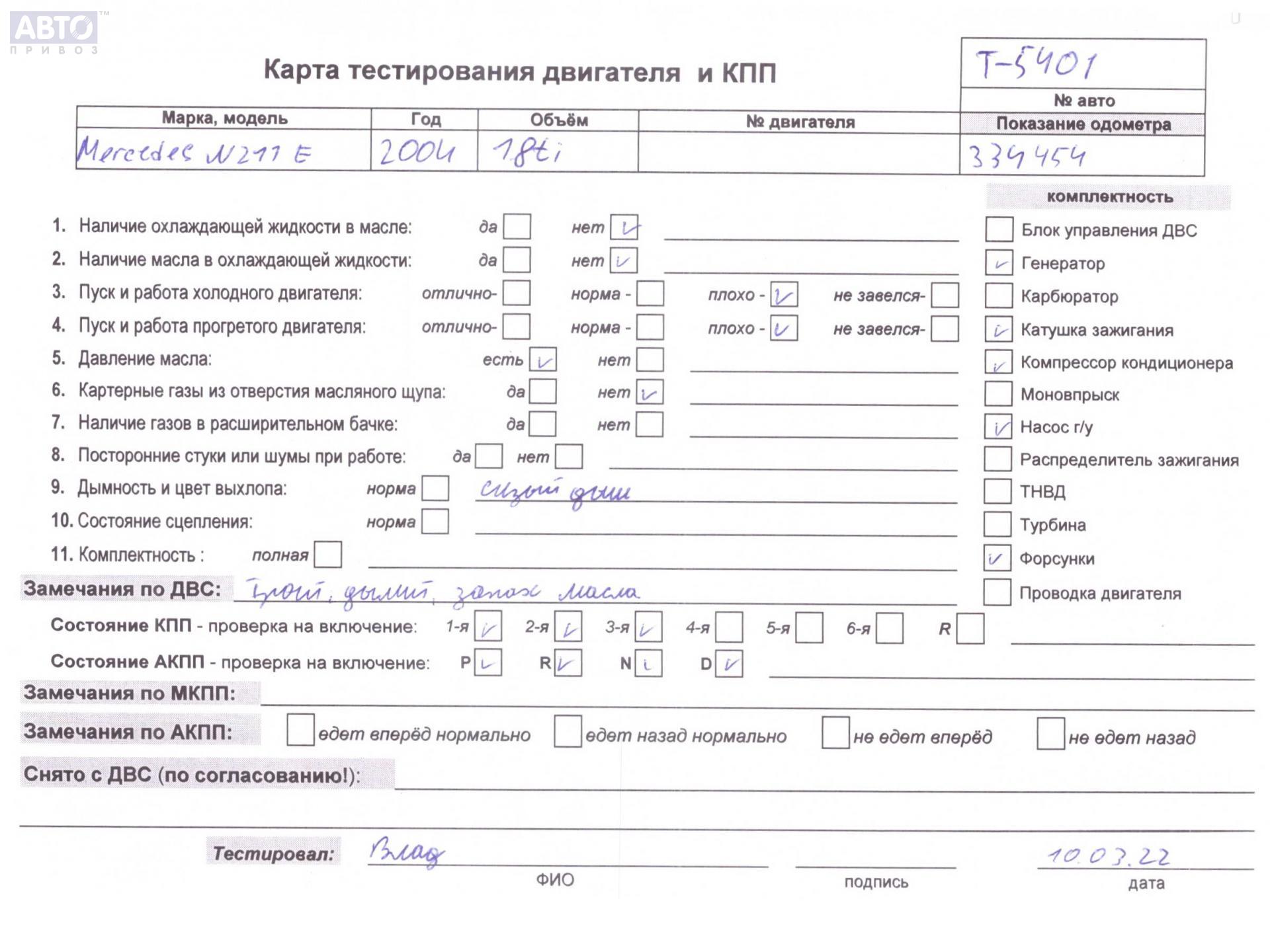 | Автомобиль / VIN: | T5401 WDB2112421A677227 |
