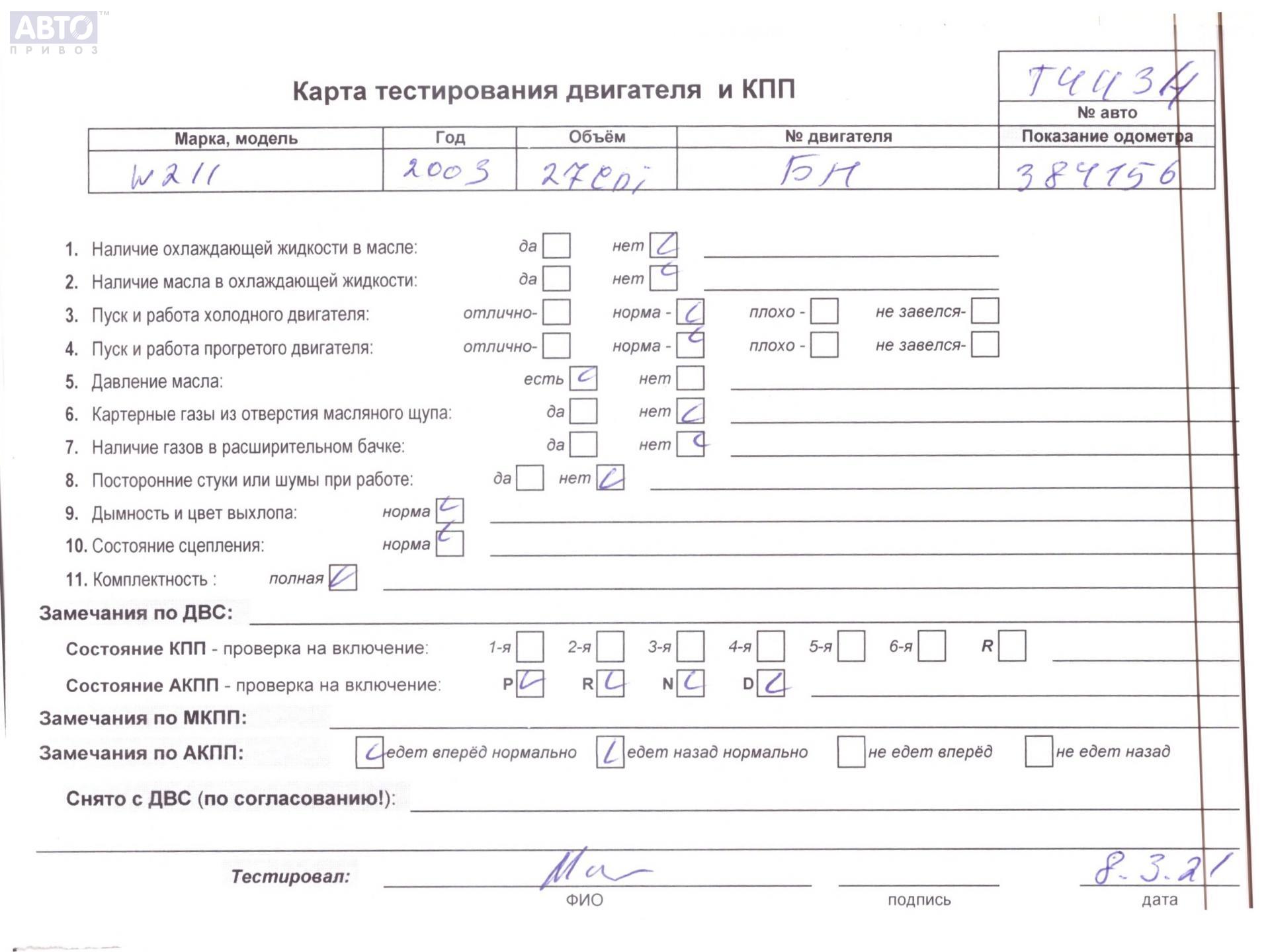 | Марка / Модель / Год: | Mercedes E-Class W211 (2002-2009) 2003 |