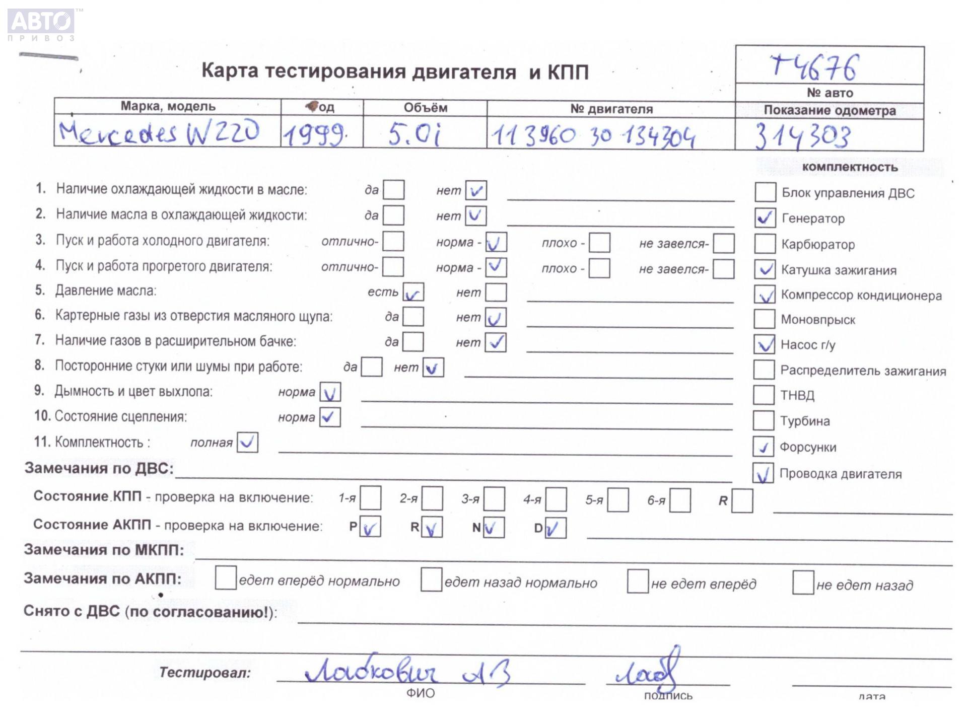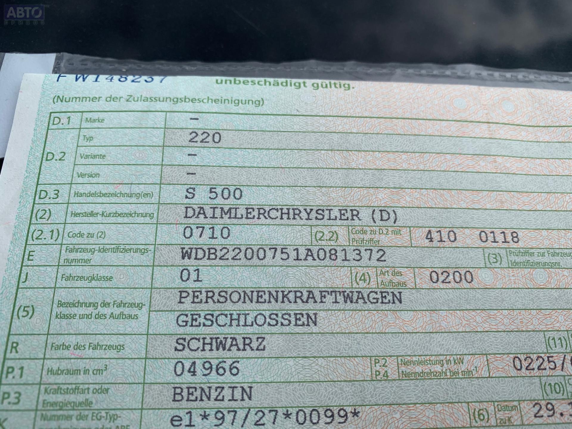 | Марка / Модель / Год: | Mercedes S-Class W220 (1998-2005) 1999 |