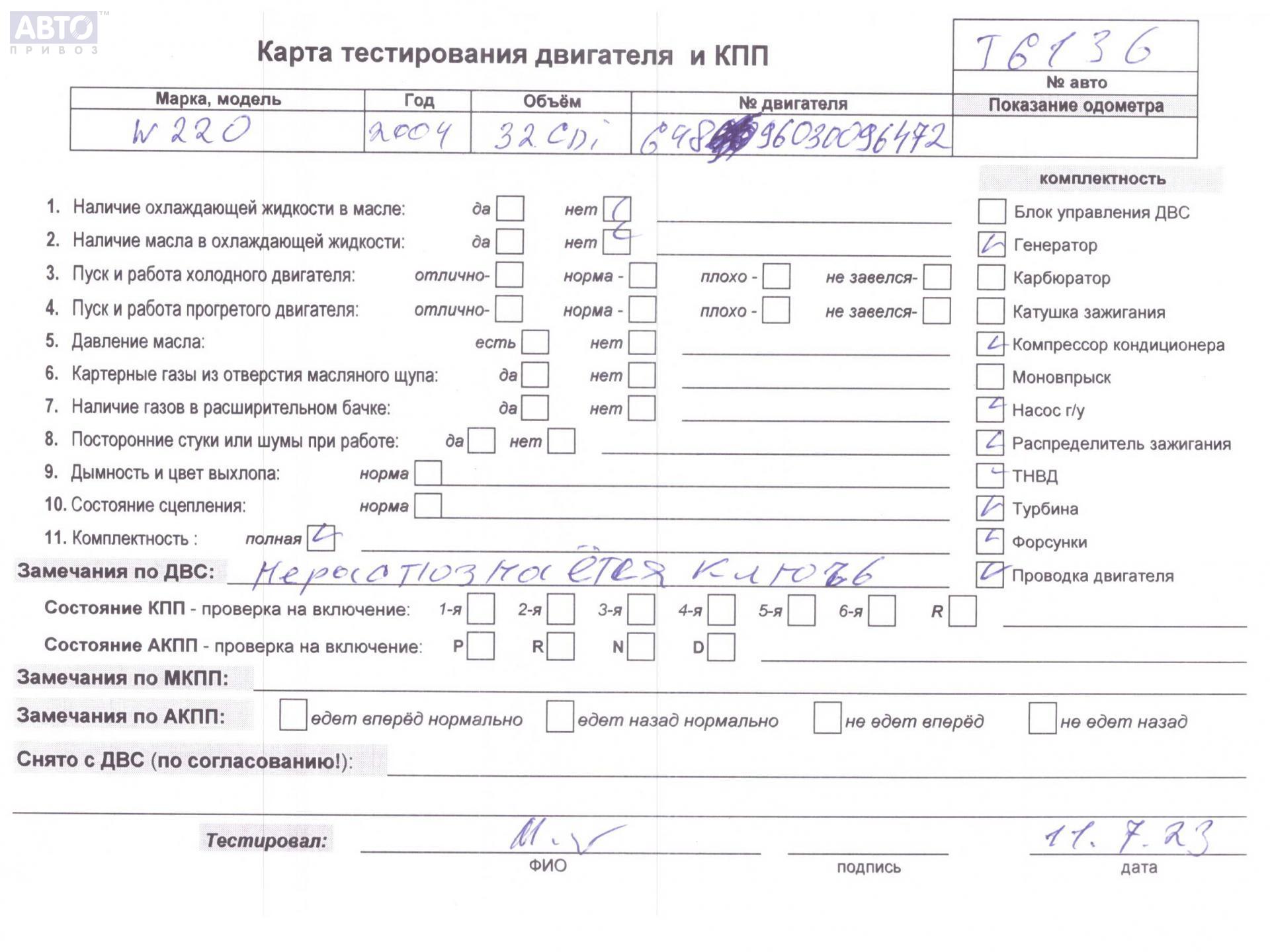 | Марка / Модель / Год: | Mercedes S-Class W220 (1998-2005) 2004 |