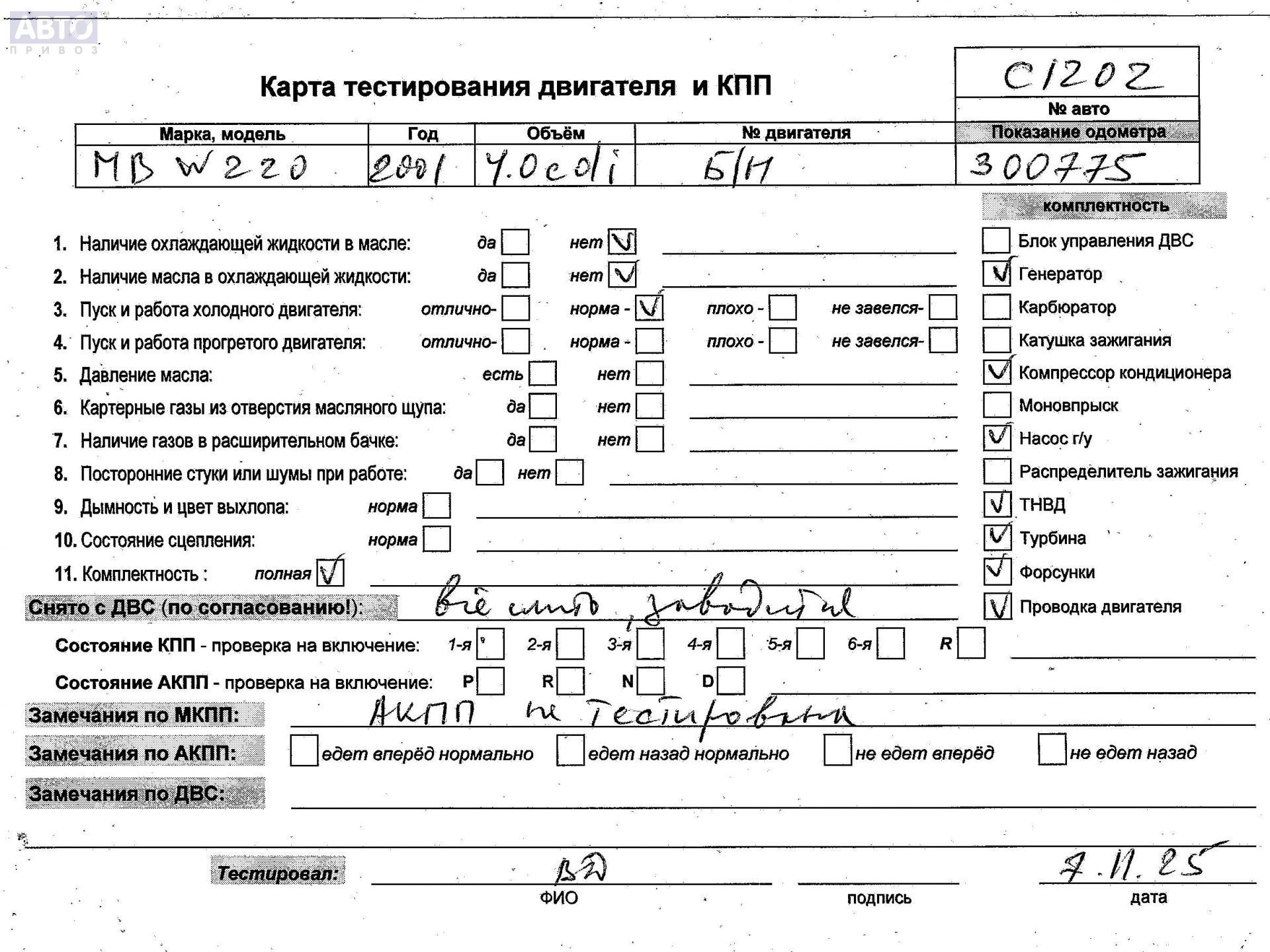 | Марка / Модель / Год: | Mercedes S-Class W220 (1998-2005) 2001 |
