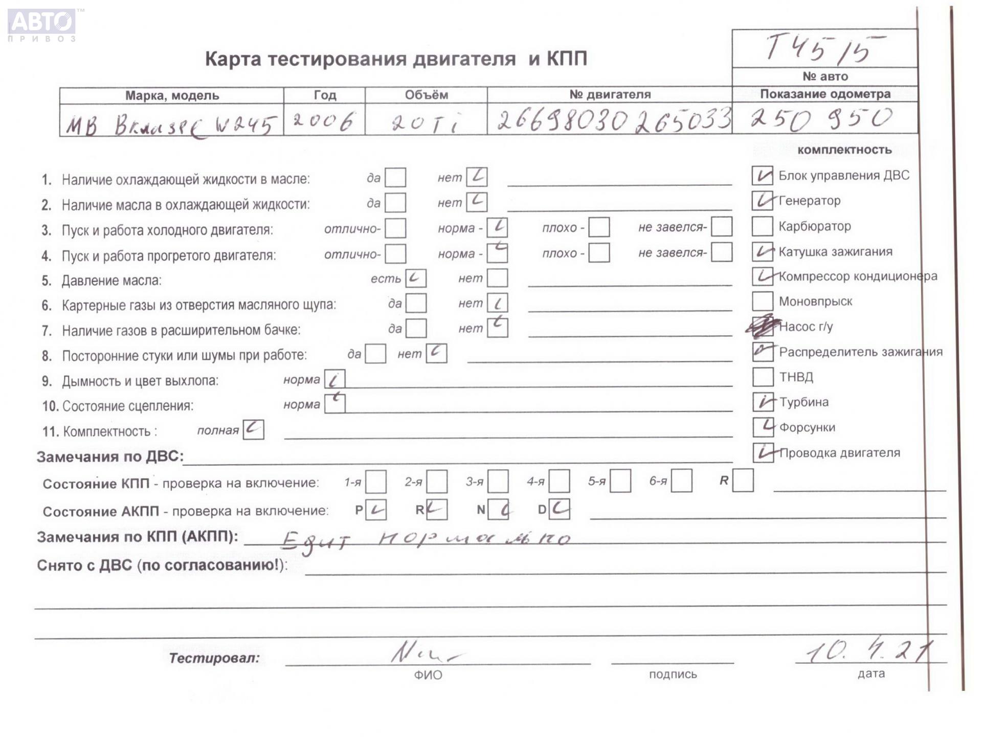 | Марка / Модель / Год: | Mercedes B-Class W245 (2005-2011) 2006 |