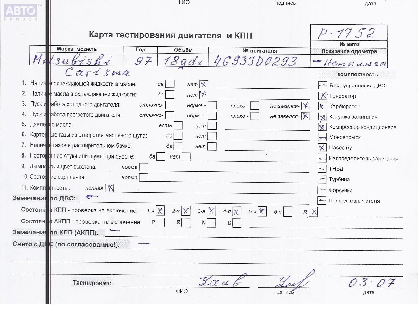| Марка / Модель / Год: | Mitsubishi Carisma 1997 |