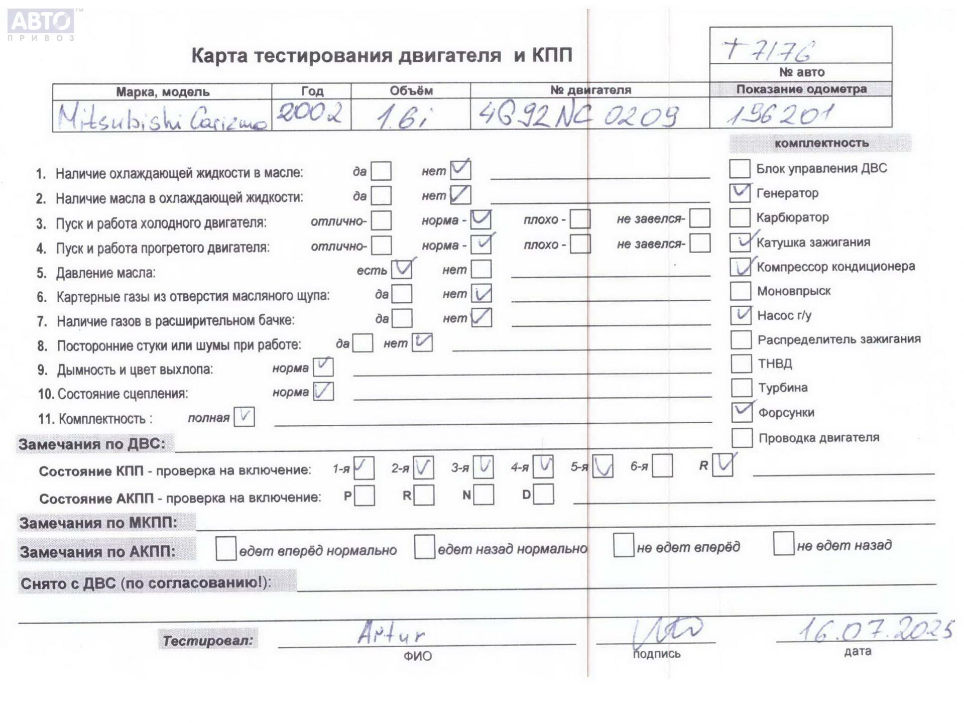 | Марка / Модель / Год: | Mitsubishi Carisma 2001 |