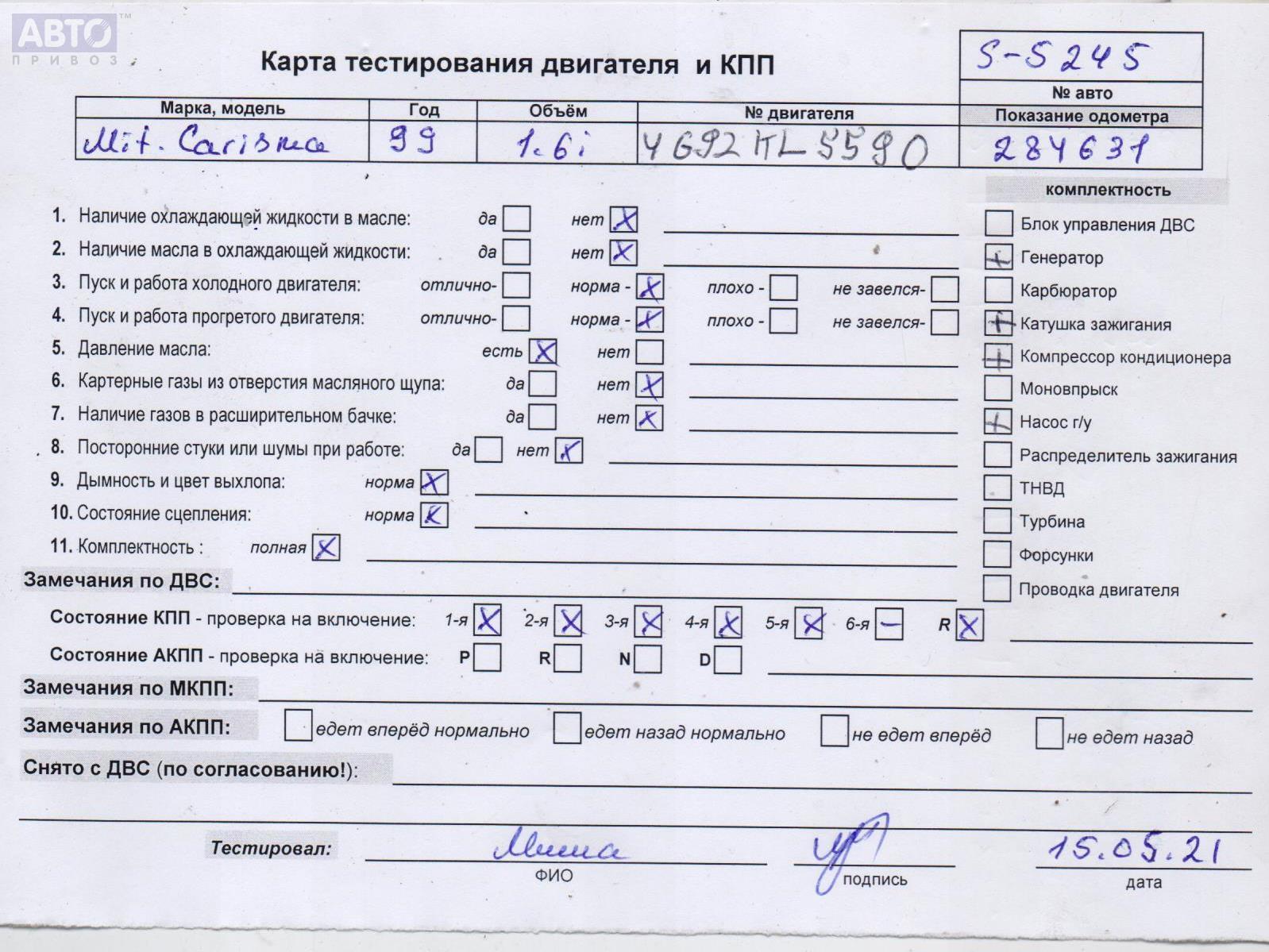 | Марка / Модель / Год: | Mitsubishi Carisma 1999 |