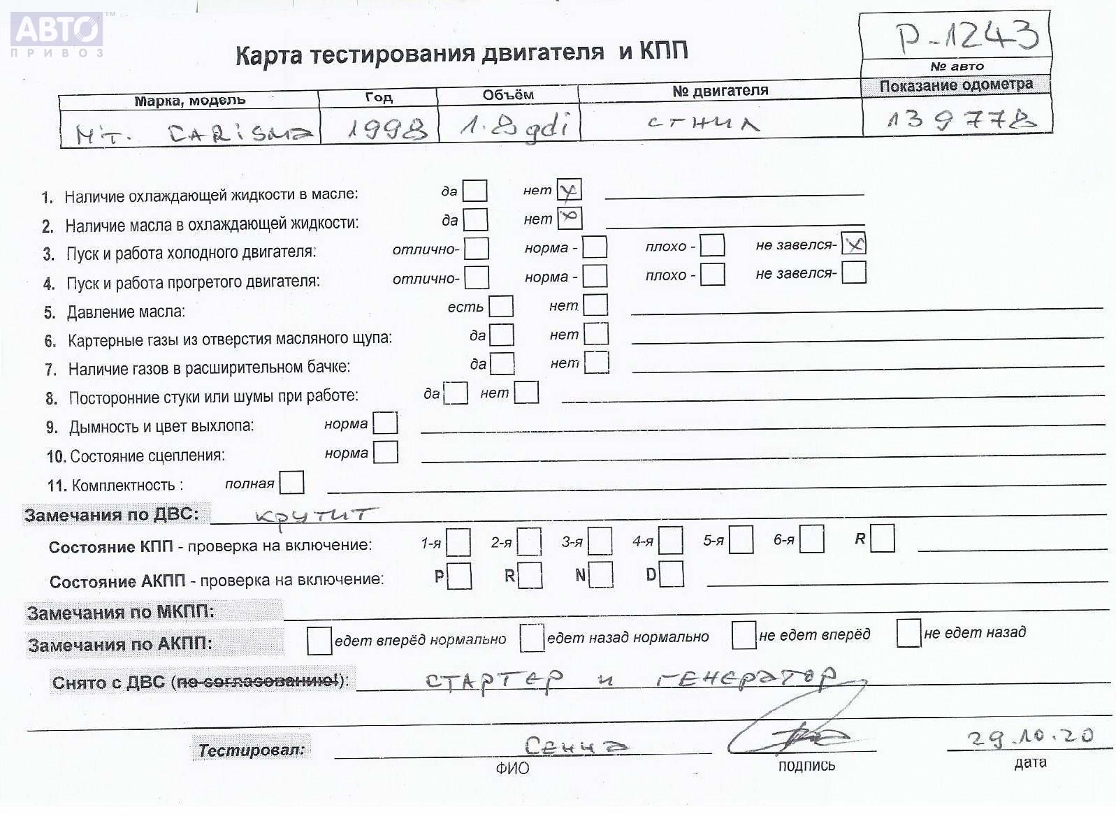 | Марка / Модель / Год: | Mitsubishi Carisma 1998 |