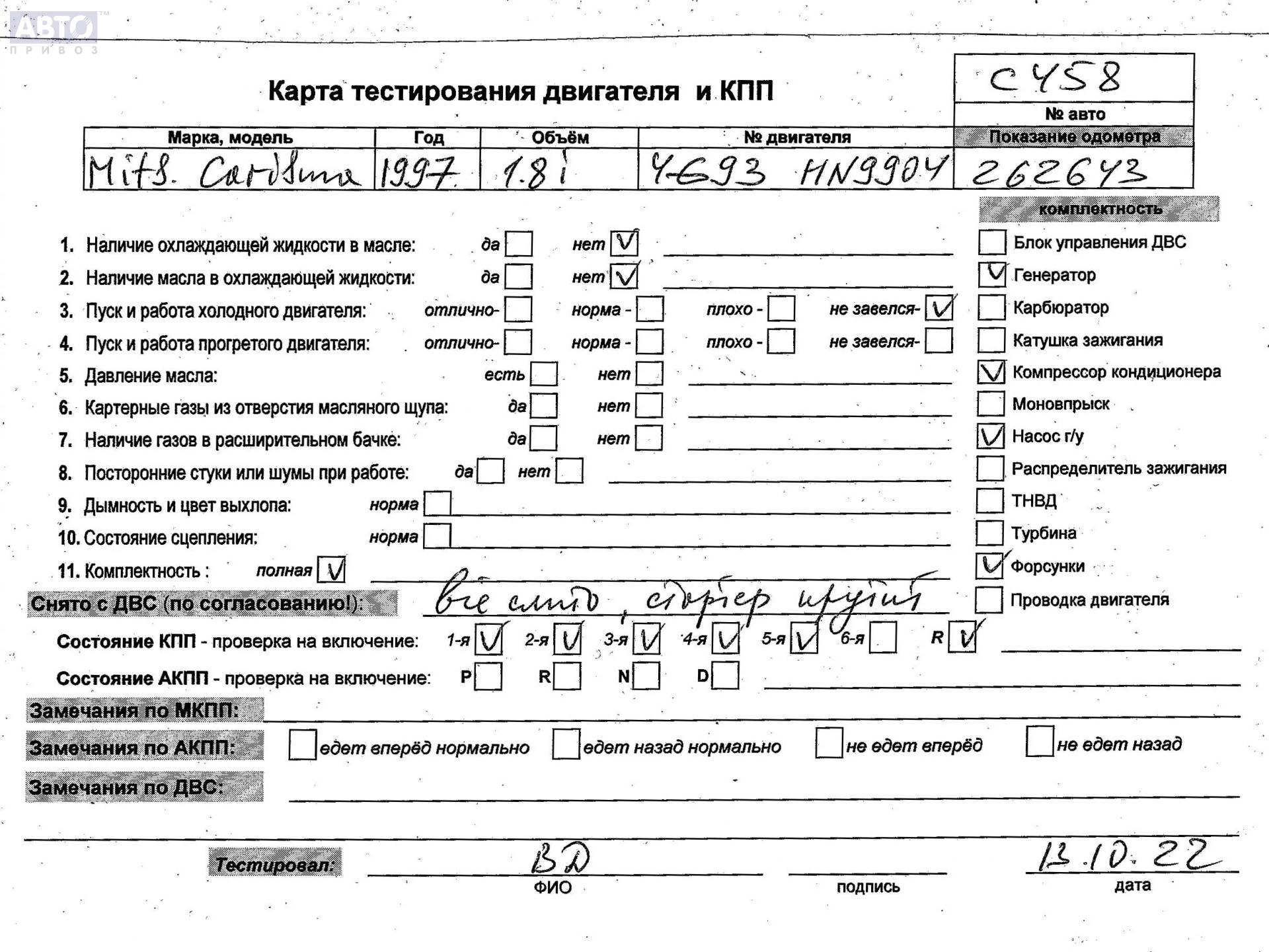 | Марка / Модель / Год: | Mitsubishi Carisma 1997 |
