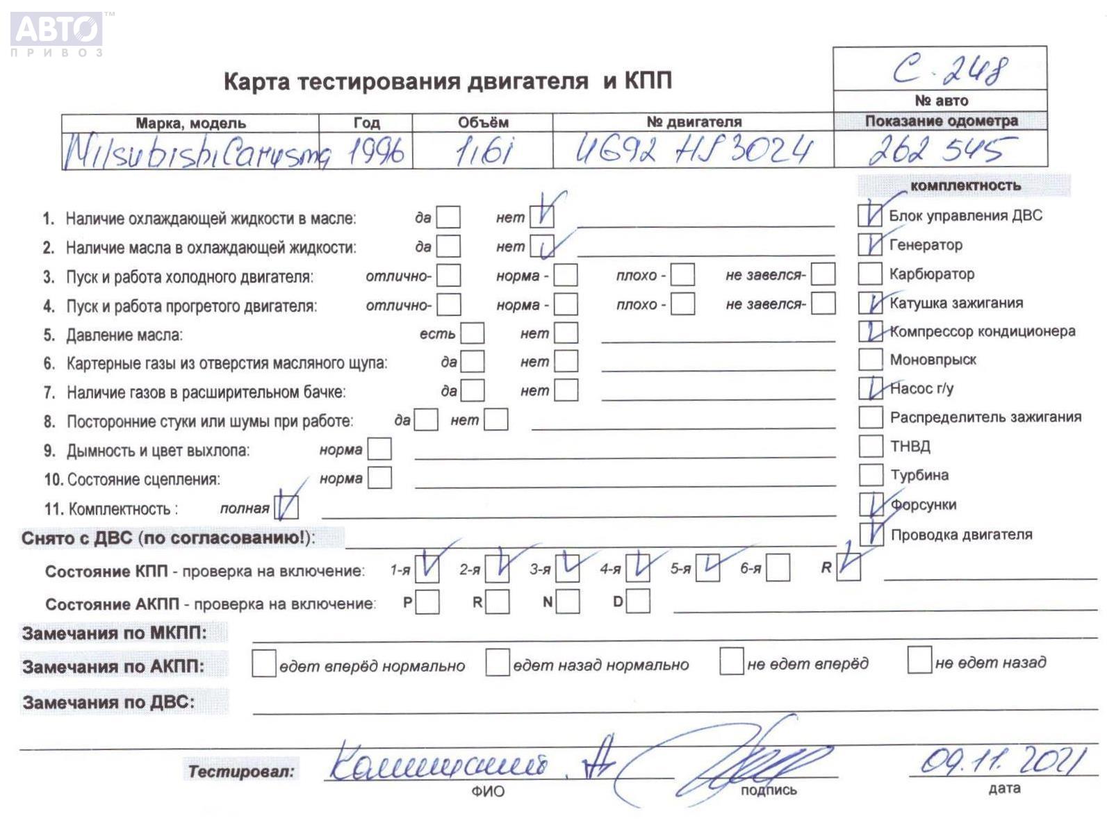 | Марка / Модель / Год: | Mitsubishi Carisma 1997 |