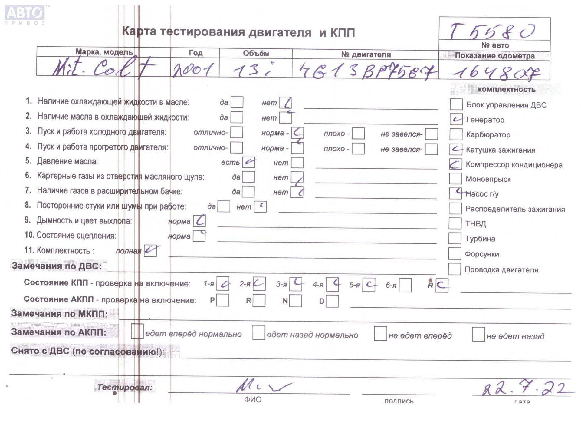 | Марка / Модель / Год: | Mitsubishi Colt (1996-2004) 2001 |