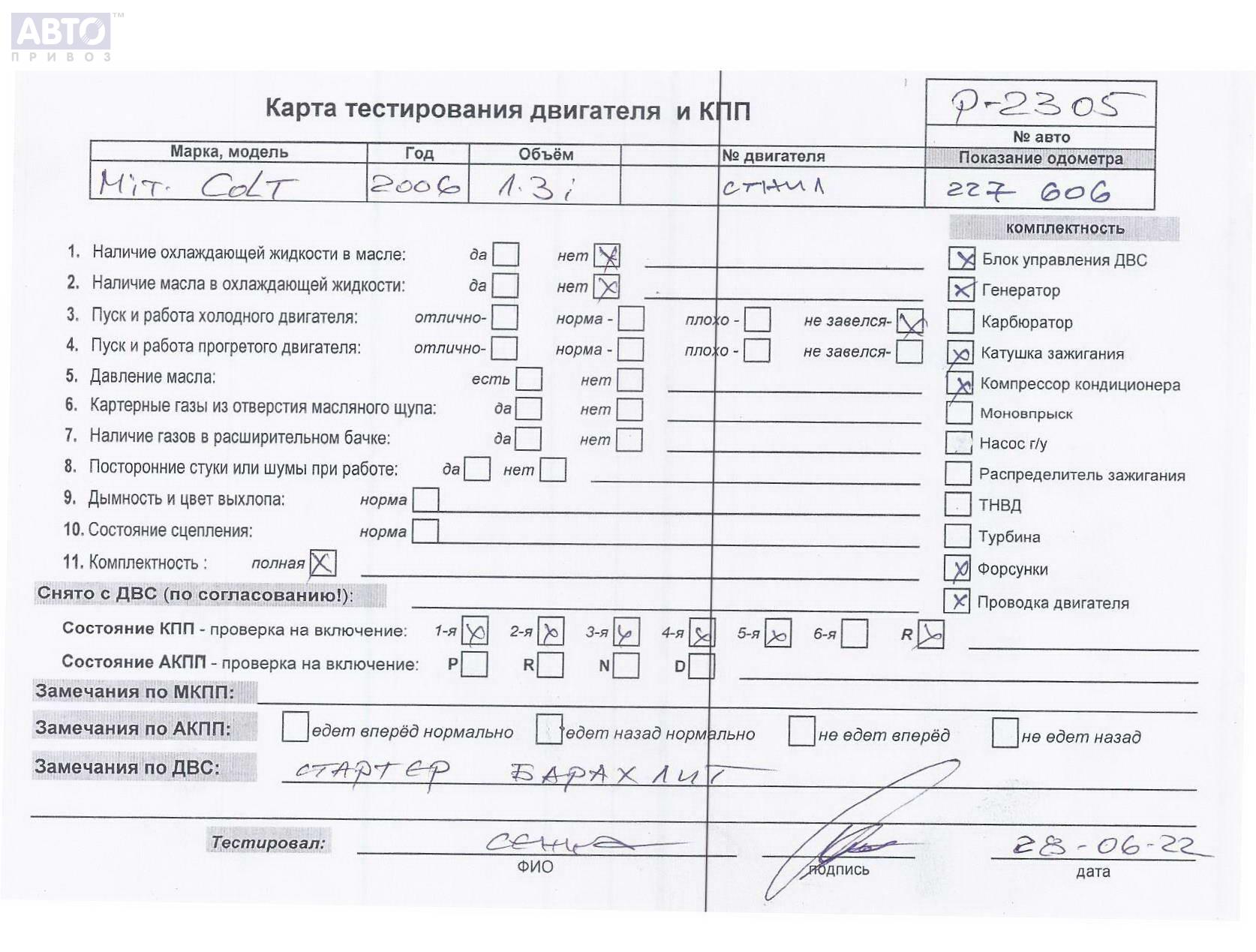 | Марка / Модель / Год: | Mitsubishi Colt (2004-2012) 2006 |