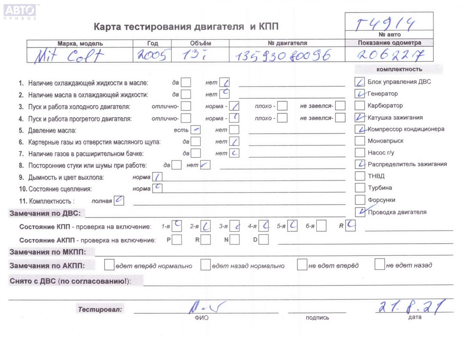 | Марка / Модель / Год: | Mitsubishi Colt (2004-2012) 2006 |