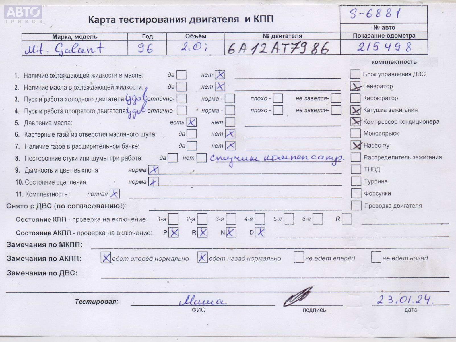 | Марка / Модель / Год: | Mitsubishi Galant (1993-1996) 1995 |