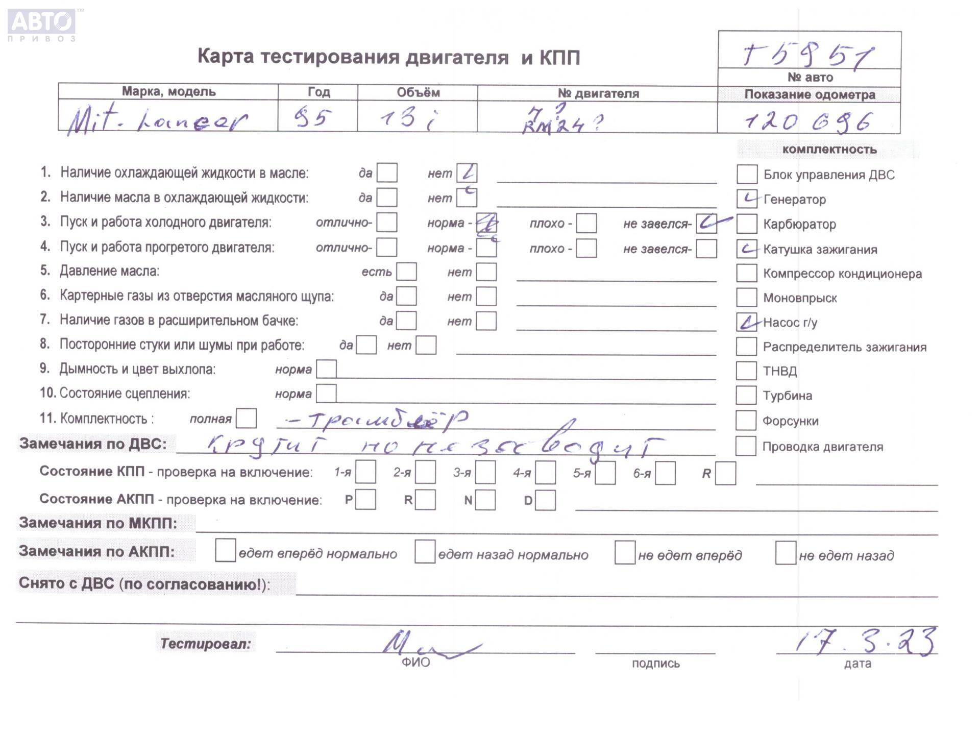| Марка / Модель / Год: | Mitsubishi Lancer (1992-1996) 1995 |