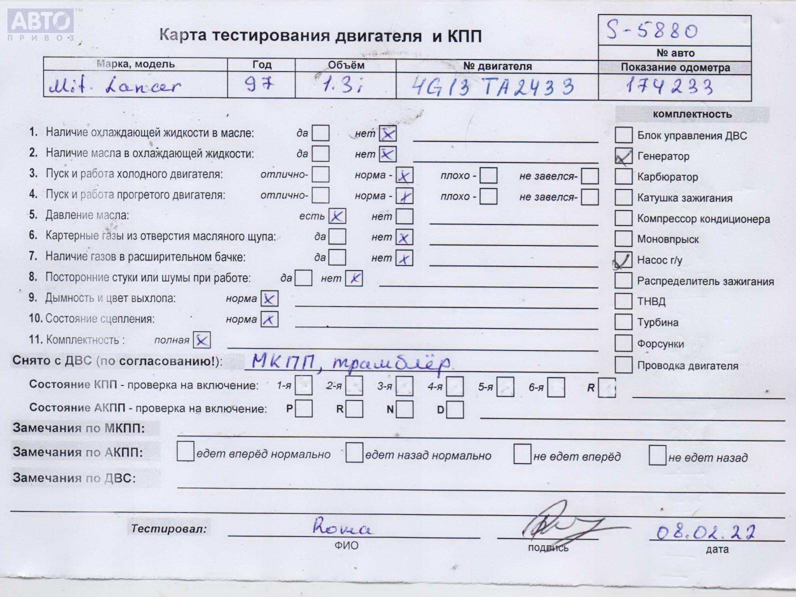 | Марка / Модель / Год: | Mitsubishi Lancer (1996-2001) 1997 |