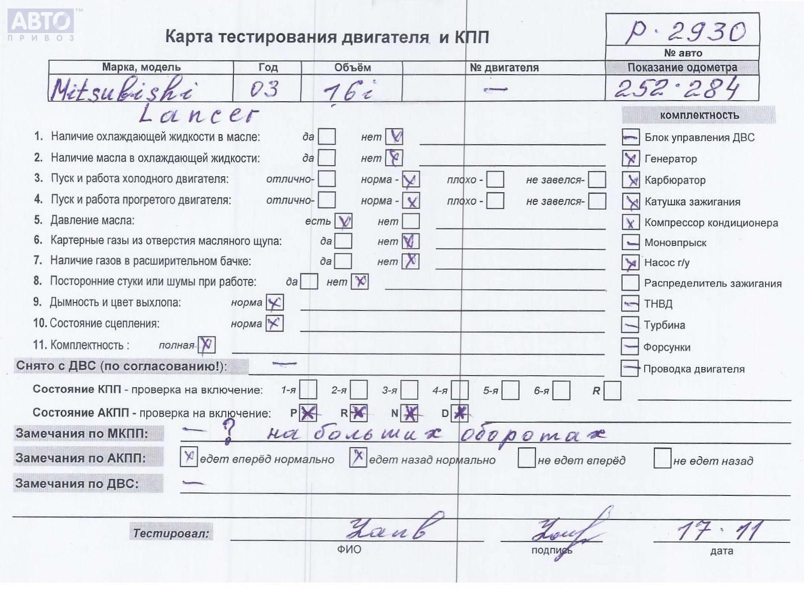 | Марка / Модель / Год: | Mitsubishi Lancer (2000-2010) 2003 |