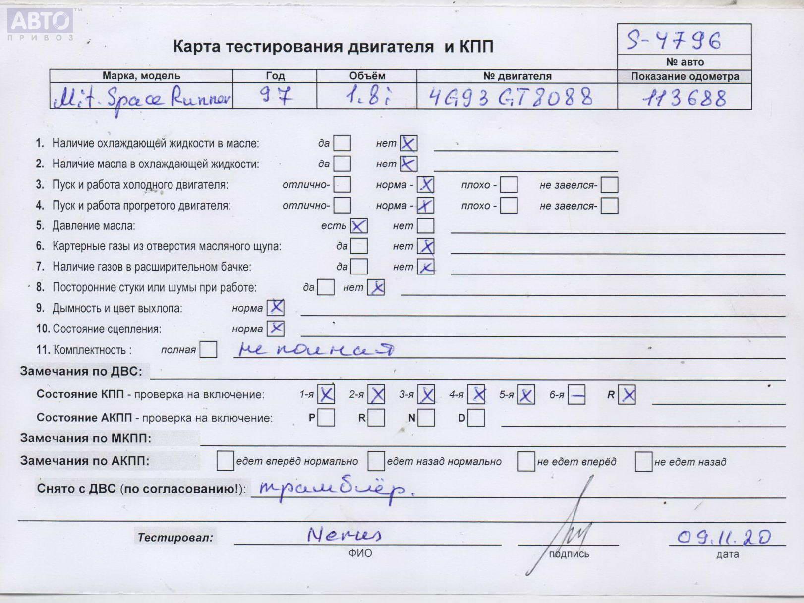 | Марка / Модель / Год: | Mitsubishi Space Runner (1991-1998) 1997 |